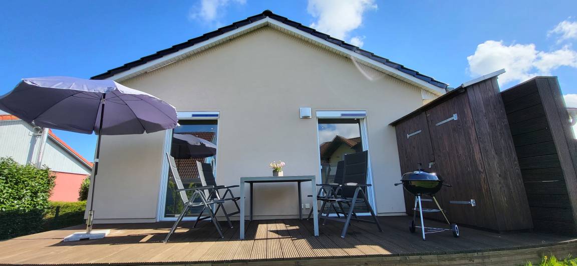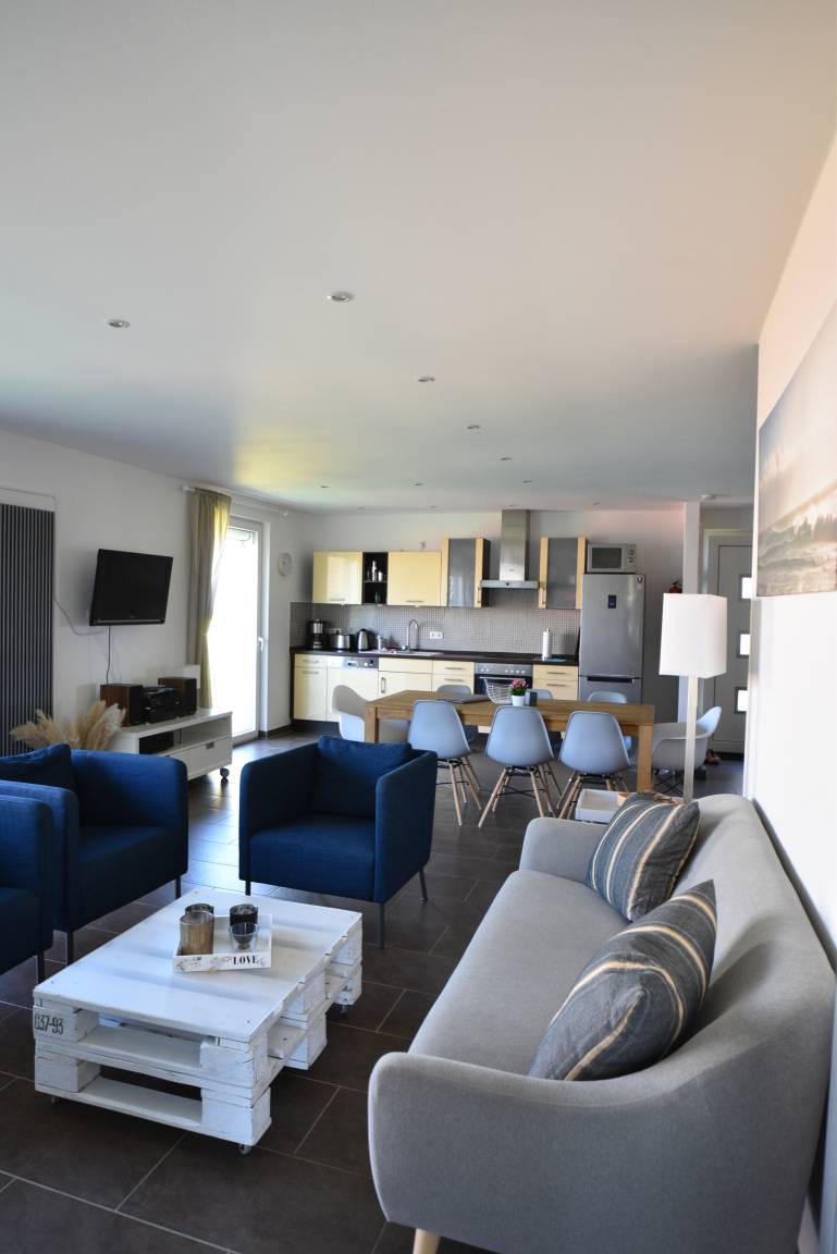 Einen geräumigen Wohnbereich mit integrierter Küche, ein modernes Badezimmer und eine private Terrasse. Die Ferienwohnung ist komplett ausgestattet und bietet Ihnen alles, was Sie für einen erholsamen und komfortablen Aufenthalt benötigen.