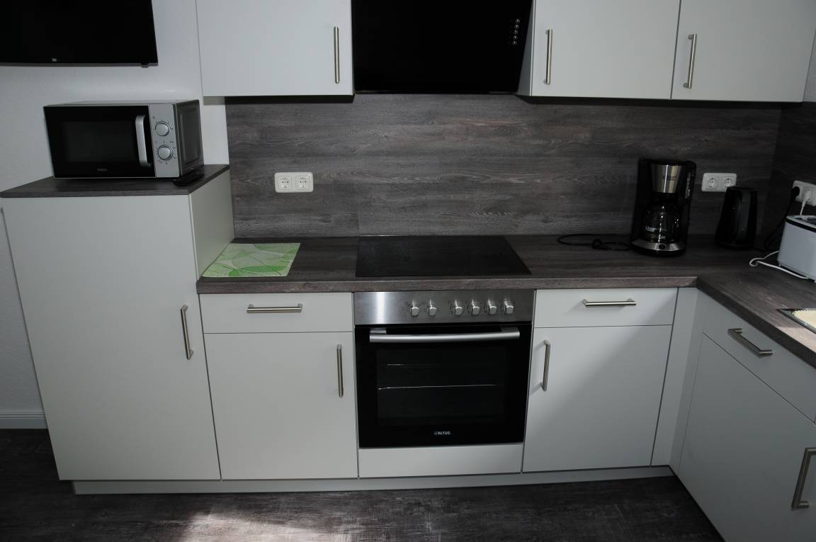Die Ferienwohnung verfügt über kein separates Wohnzimmer, sondern eine gemütliche Wohnküche mit Essbereich und Sitzecke - ideal zum Kochen, Essen und Entspannen in einem Raum.