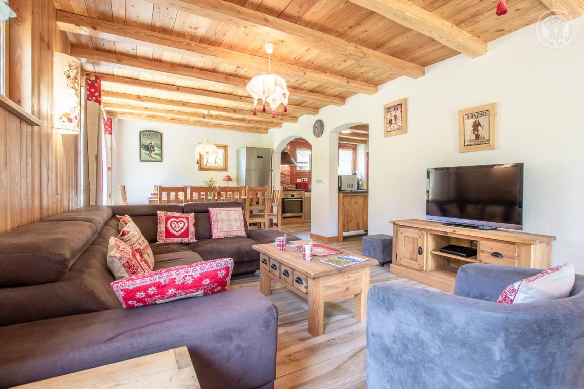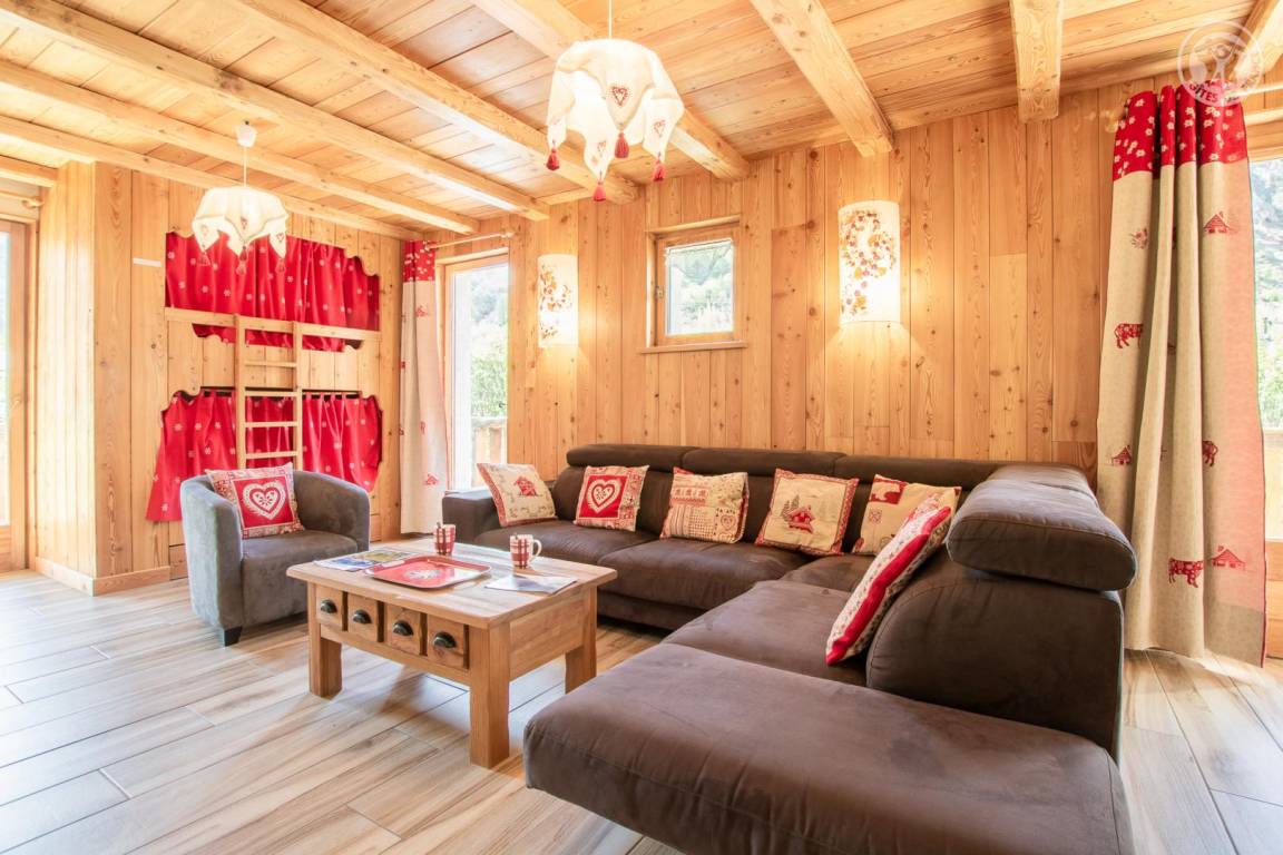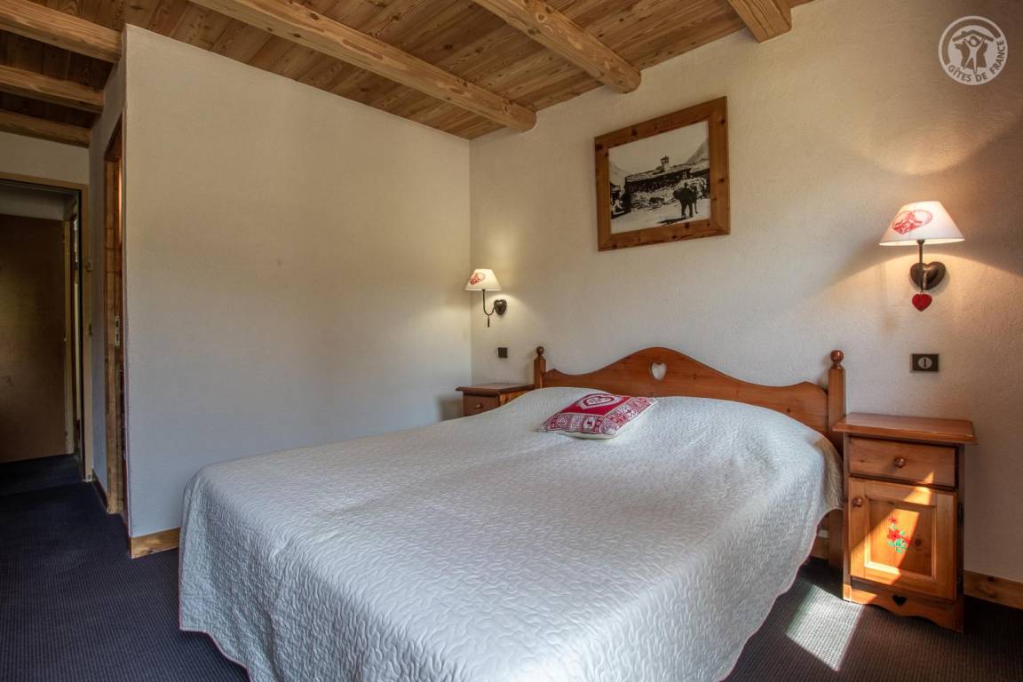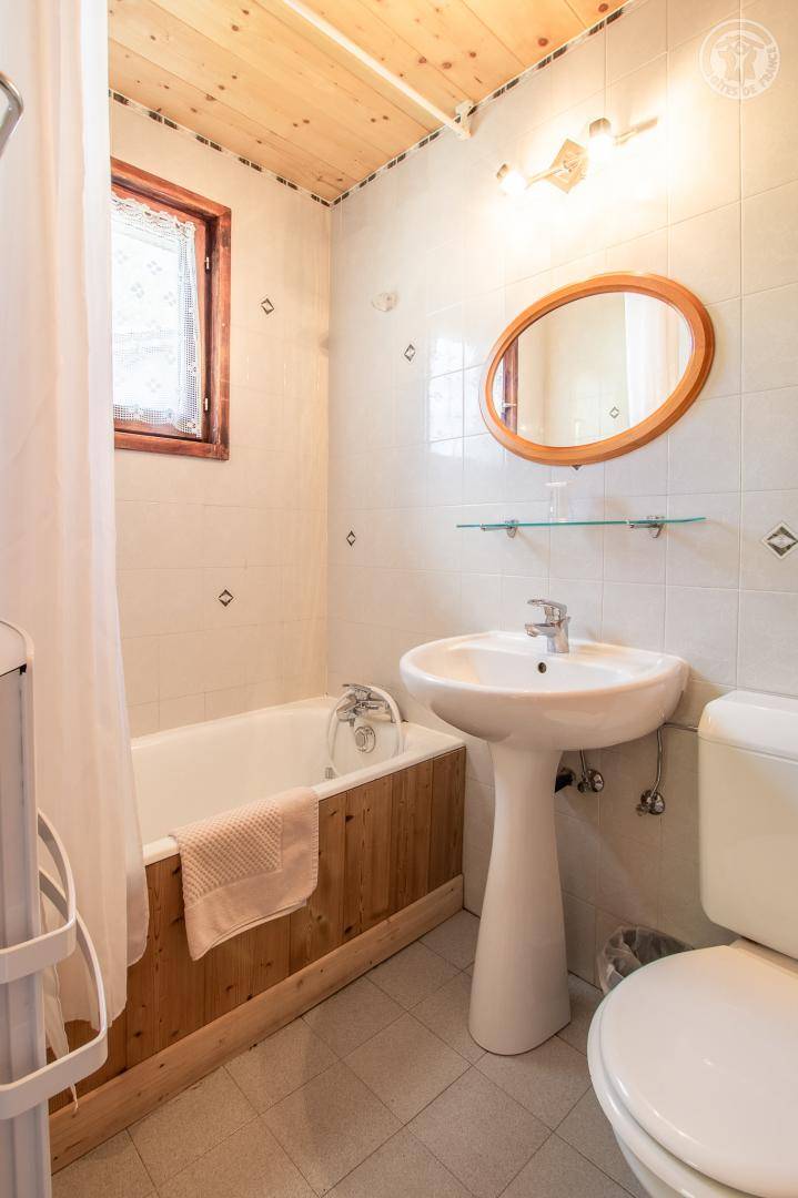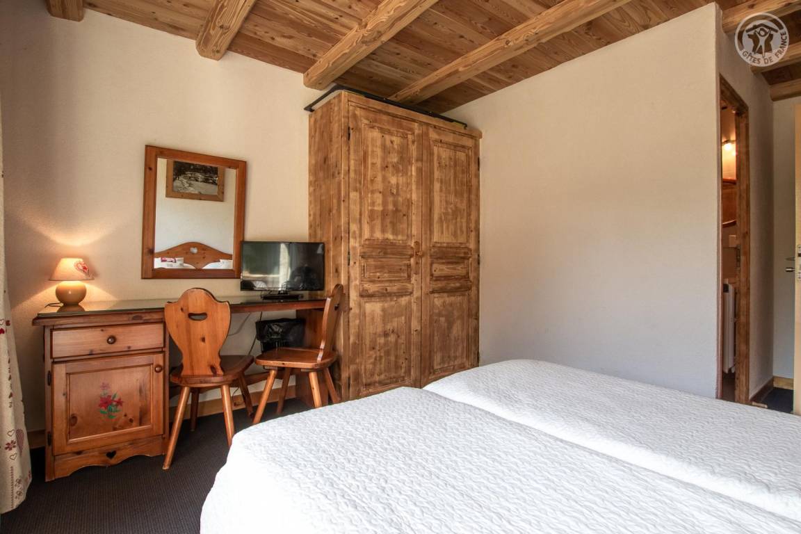 Chalet bestehend aus 3 Gîtes und dem Haus der Besitzer. 1 privater Parkplatz im Winter gepflügt. Wohnung im 2. Stock: Zugang von der Rezeption (auf Parkplatz-/Straßenniveau) über eine absteigende Treppe, dann Maisonette-Wohnung (Treppe mit 10 Stufen zwischen den Schlafzimmern und dem Wohnzimmer). Eingang, 3 Schlafzimmer mit eigenem Bad (Badewanne und WC) und Balkon (2 Einzelbetten 80 x 190 cm, die zu 1 Doppelbett 160 x 190 cm kombiniert werden können / 2 Einzelbetten 80 x 190 cm, die zu 1 Doppelbett 160 x 190 cm kombiniert werden können / 2 Einzelbetten 80 x 190 cm kombinierbar zu 1 Doppelbett 160x190 cm). Untergeschoss: Wohnzimmer-Küche-Wohnbereich (2 geschlossene Betten 90x190 cm) mit Balkon, 1 Schlafzimmer (2 Einzelbetten 80x190 cm, die zu 1 Doppelbett 160x190 cm zusammengestellt werden können) mit Badezimmer (Badewanne und Toilette), 1 Badezimmer ( Dusche und WC) und Balkon. Gemeinsamer Skiraum mit Schuhtrockner.