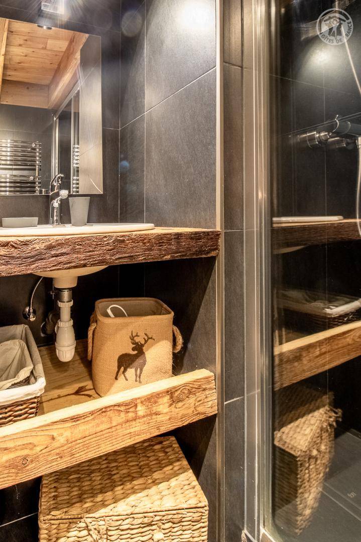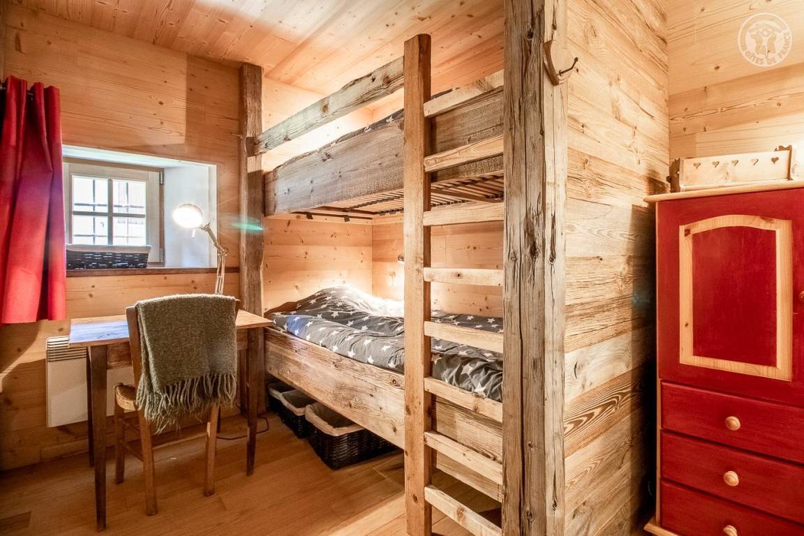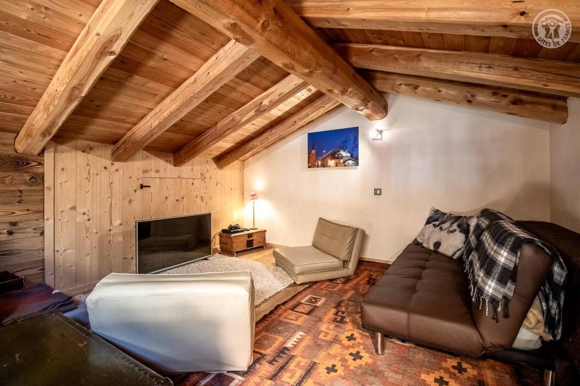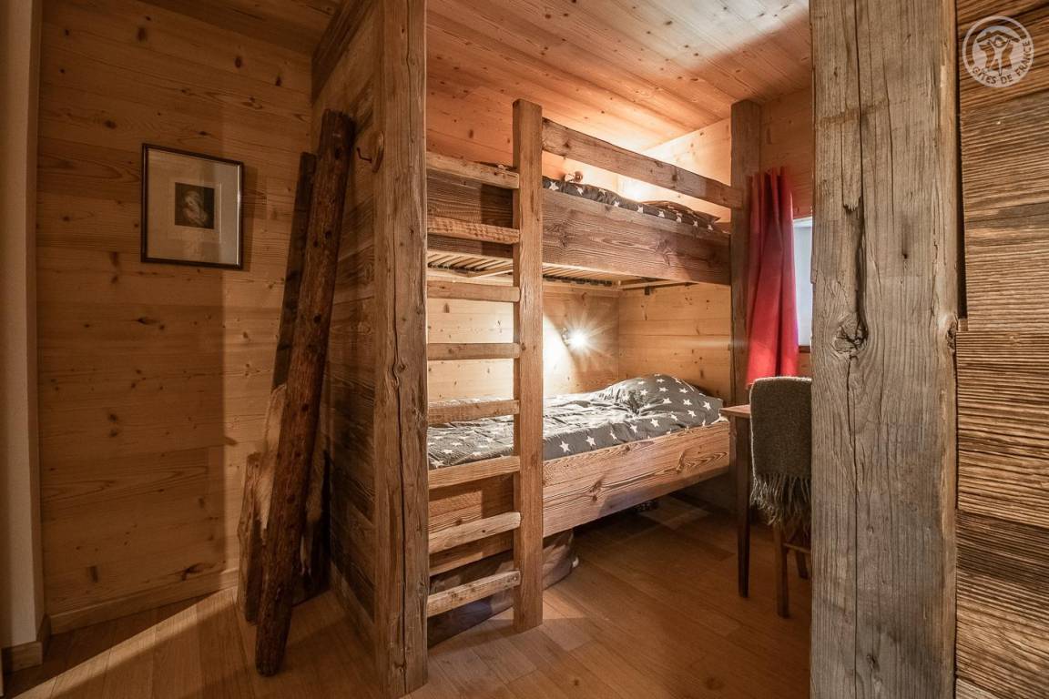 Savoyer Chalet auf 3 Ebenen. Erdgeschoss: Eingang mit Schuhtrockner. 1. Etage: 3 Schlafzimmer, eines mit Duschbad (4 Etagenbetten 90 x 190 cm / 1 Doppelbett 160 x 200 cm / 1 Doppelbett 140 x 200 cm), Sauna, Badezimmer (Dusche), separates WC. 2. Stock: Küche - Wohnzimmer - Wohnzimmer mit Zugang zu einer Balkon-Terrasse, 1 Schlafzimmer (1 Doppelbett 160x200 cm), Badezimmer (Dusche), separates WC. 3. Etage im Zwischengeschoss mit Spielbereich und Bibliothek. Bettwäsche, Handtücher und Endreinigung inklusive. Pelletofen. Lautsprecher angeschlossen. Parkplatz in der Nähe.