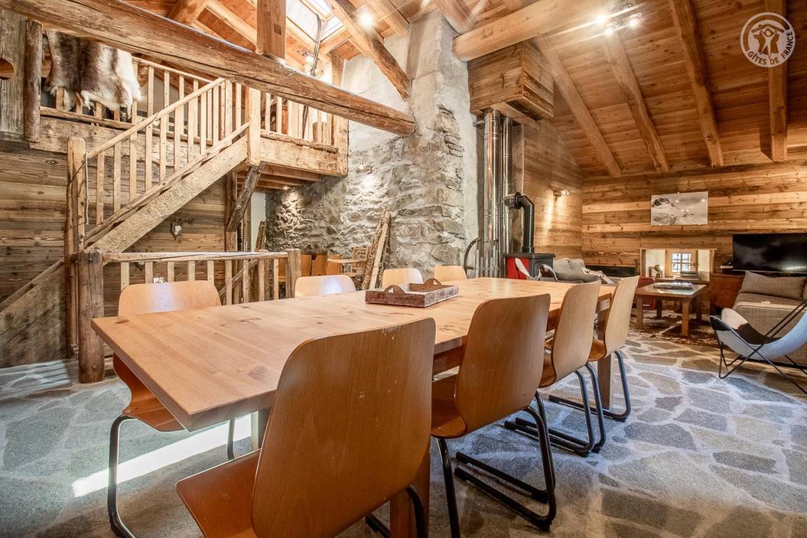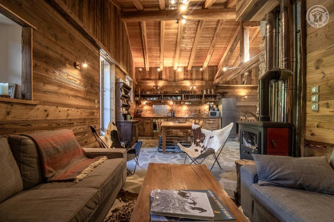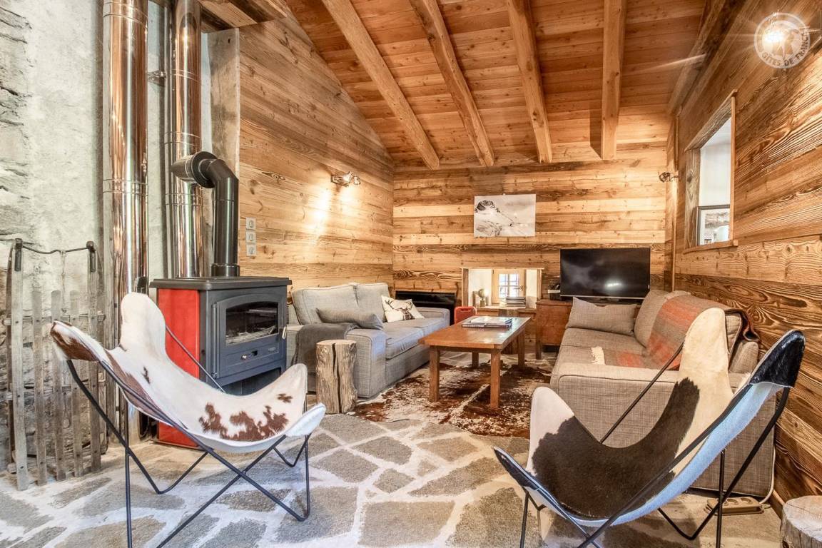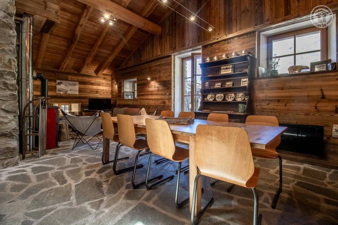 Charmantes Ferienhaus mit viel Komfort. Typisches Interieur der Haute-Maurienne. Gepflegte, warme und gemütliche Dekoration mit Bergatmosphäre, die den Zimmern Charakter verleiht. Großes Wohnzimmer mit hohen Decken. Unmittelbare hochwertige Umgebung in der Nähe von Outdoor-Aktivitäten.