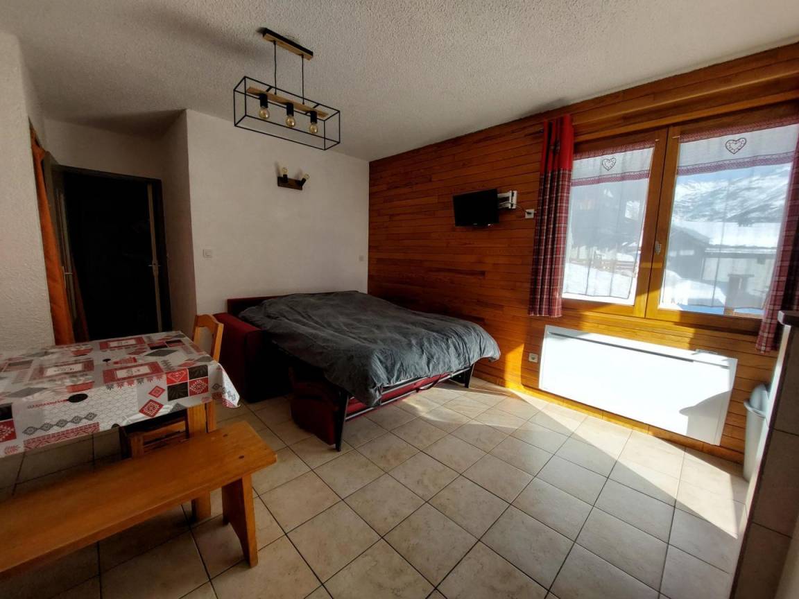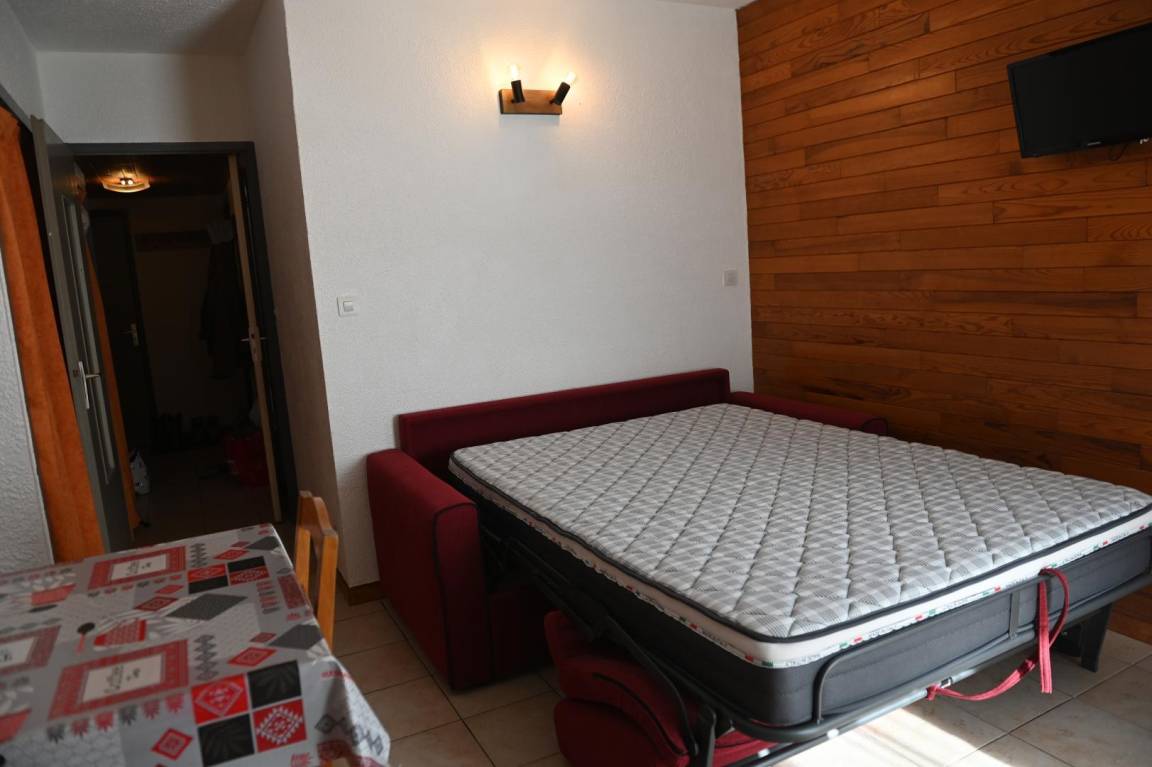 „L'appartement est propre, bien équipé (cuisine aves tous les ustensiles, appareil à raclette, poivre, sel,...etc.) et correspond à la description. Le canapé-lit est de qualité avec un bon matelas. Pour finir, l'emplacement est très bien avec un accès rapide aux remontées mécaniques.“