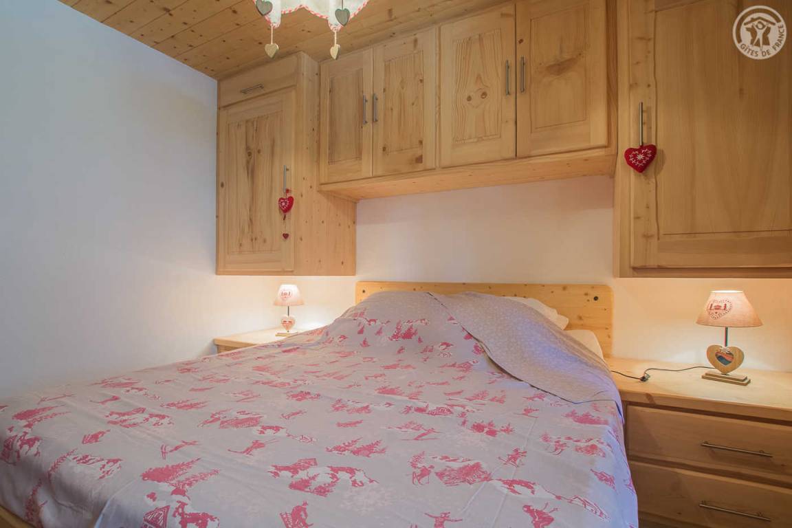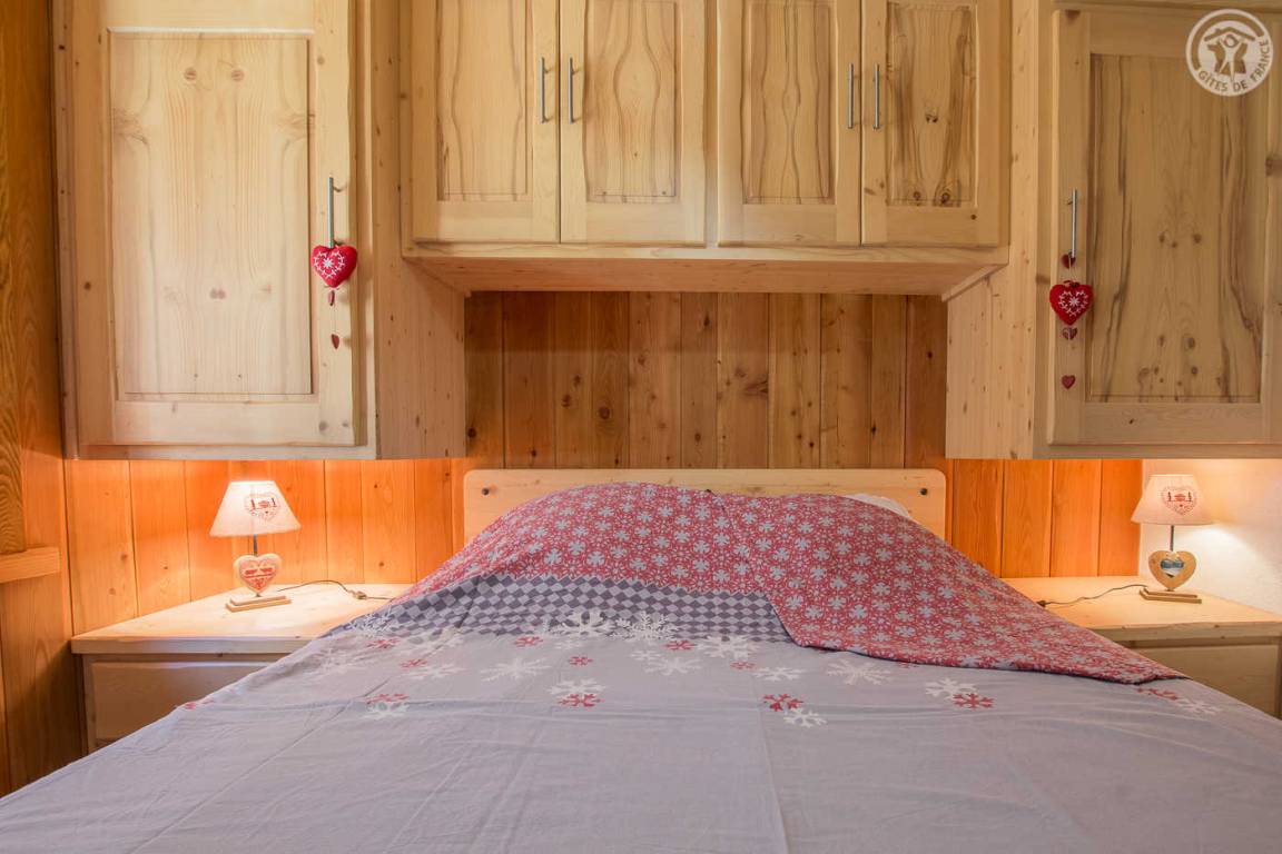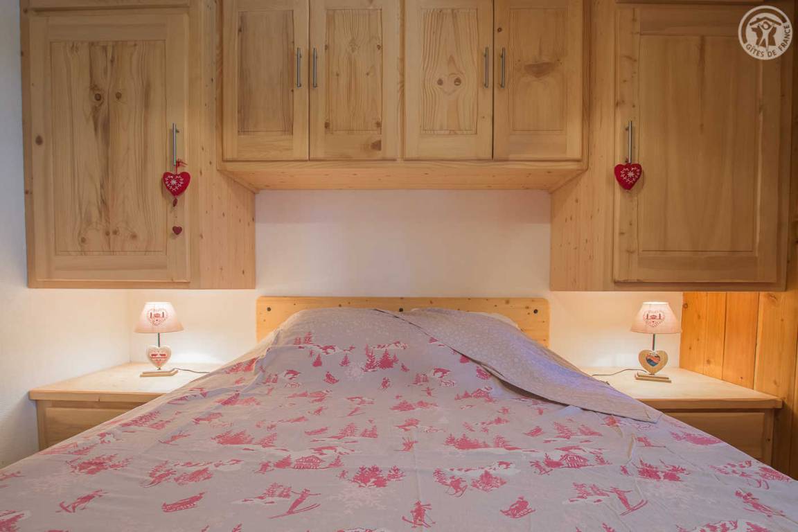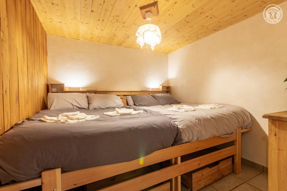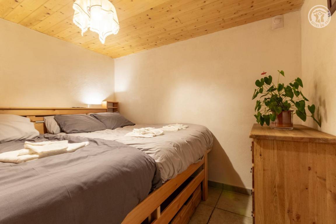 Ferienhaus im Chalet der Eigentümer. Erdgeschoss (unabhängiger Zugang über 3 Steinstufen): Wohnzimmer-Küchen-Lounge-Bereich, 4 Schlafzimmer (1 Doppelbett 160x200 cm / 1 Doppelbett 160x200 cm / 1 Doppelbett 160x200 cm / 2 Doppelbetten 140x190 auf einer niedrigeren Seite platziert, ohne Öffnung nach außen), Duschraum mit WC, Badezimmer (Badewanne), separates WC, Skiraum. Terrasse. Bettwäsche, Handtücher und Haushaltswäsche inklusive, Endreinigung inklusive. Zuschlag von 35 € für bei Ankunft bezogene Betten. Bei Kurzaufenthalten: gemachte Betten bei Anreise inklusive.
