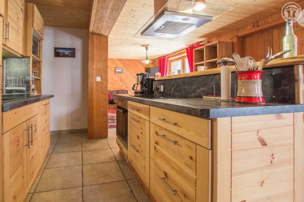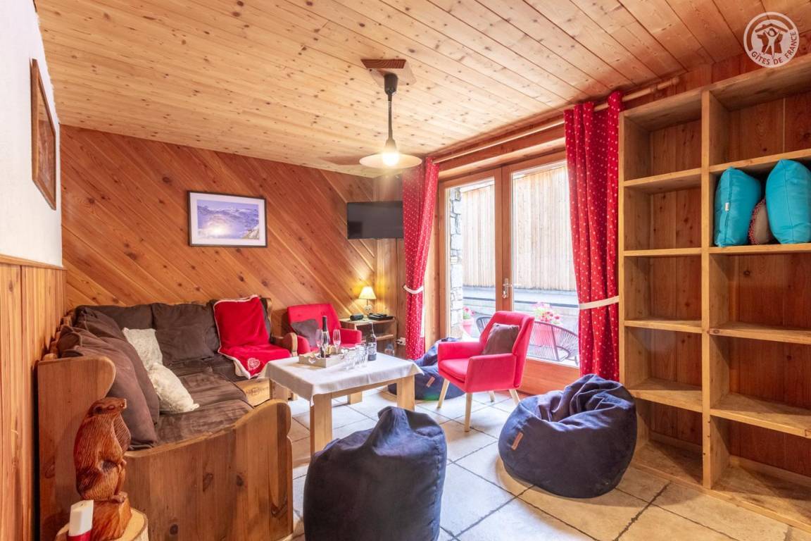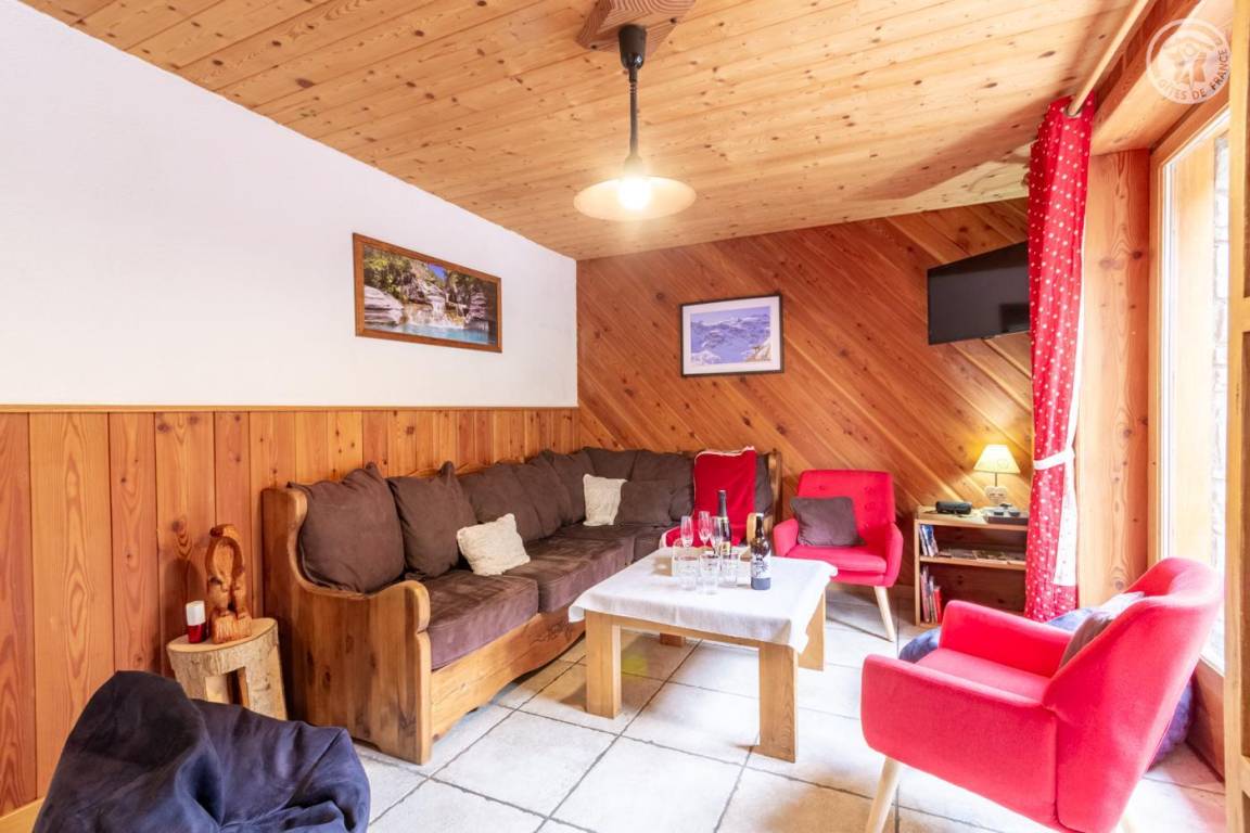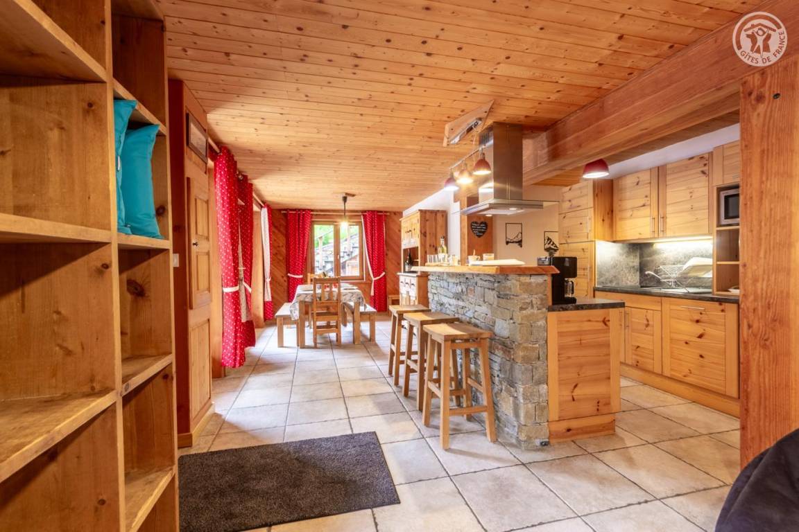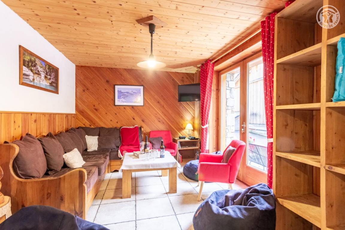 Ferienhaus im Chalet der Eigentümer. Erdgeschoss (unabhängiger Zugang über 3 Steinstufen): Wohnzimmer-Küchen-Lounge-Bereich, 4 Schlafzimmer (1 Doppelbett 160x200 cm / 1 Doppelbett 160x200 cm / 1 Doppelbett 160x200 cm / 2 Doppelbetten 140x190 auf einer niedrigeren Seite platziert, ohne Öffnung nach außen), Duschraum mit WC, Badezimmer (Badewanne), separates WC, Skiraum. Terrasse. Bettwäsche, Handtücher und Haushaltswäsche inklusive, Endreinigung inklusive. Zuschlag von 35 € für bei Ankunft bezogene Betten. Bei Kurzaufenthalten: gemachte Betten bei Anreise inklusive.