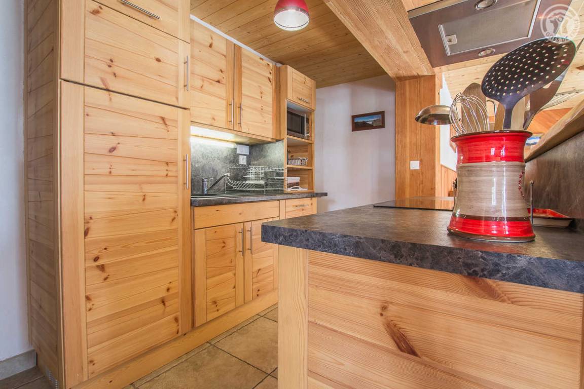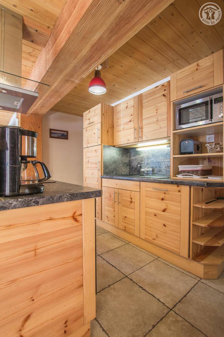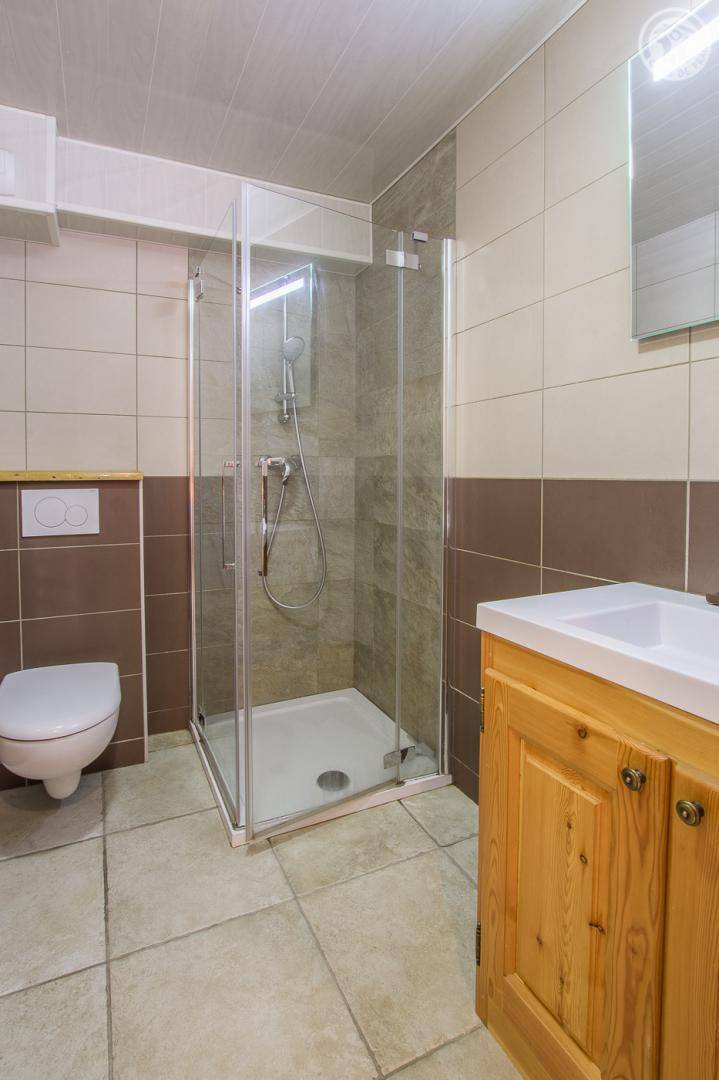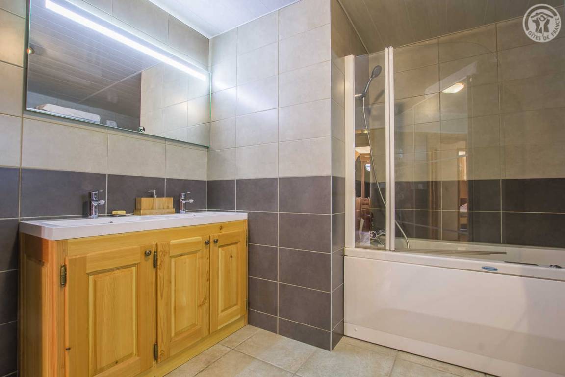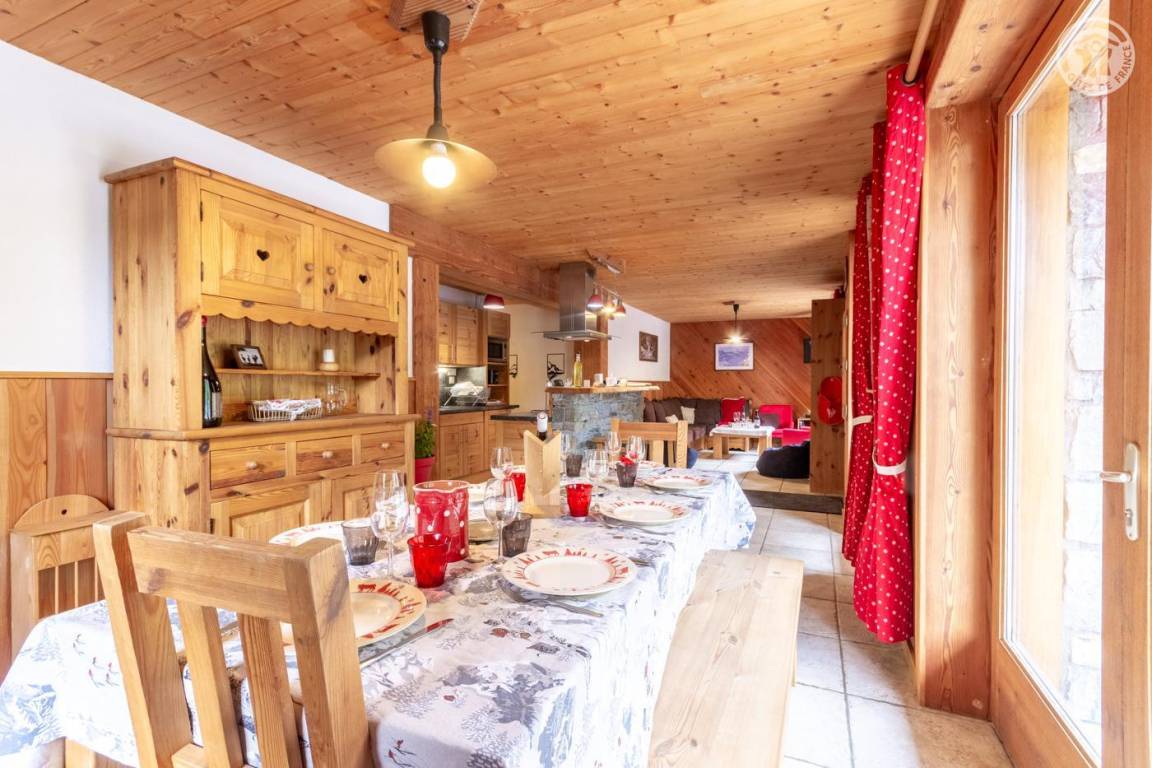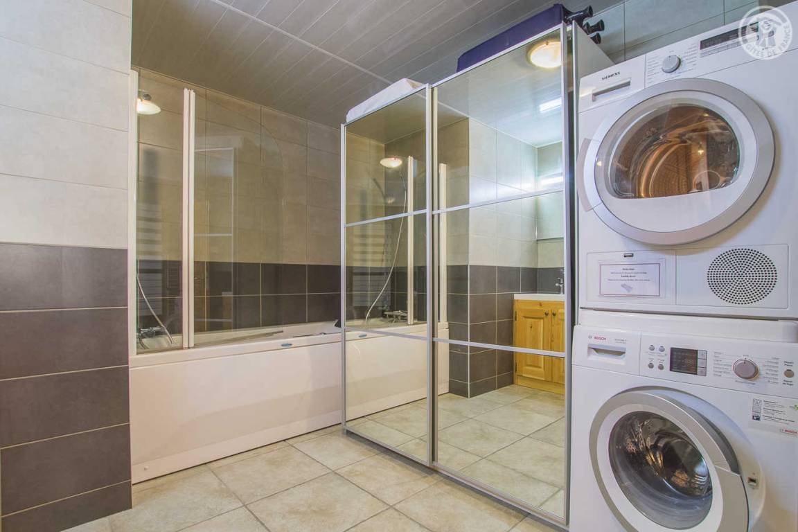 Ferienhaus im Chalet der Eigentümer. Erdgeschoss (unabhängiger Zugang über 3 Steinstufen): Wohnzimmer-Küchen-Lounge-Bereich, 4 Schlafzimmer (1 Doppelbett 160x200 cm / 1 Doppelbett 160x200 cm / 1 Doppelbett 160x200 cm / 2 Doppelbetten 140x190 auf einer niedrigeren Seite platziert, ohne Öffnung nach außen), Duschraum mit WC, Badezimmer (Badewanne), separates WC, Skiraum. Terrasse. Bettwäsche, Handtücher und Haushaltswäsche inklusive, Endreinigung inklusive. Zuschlag von 35 € für bei Ankunft bezogene Betten. Bei Kurzaufenthalten: gemachte Betten bei Anreise inklusive.