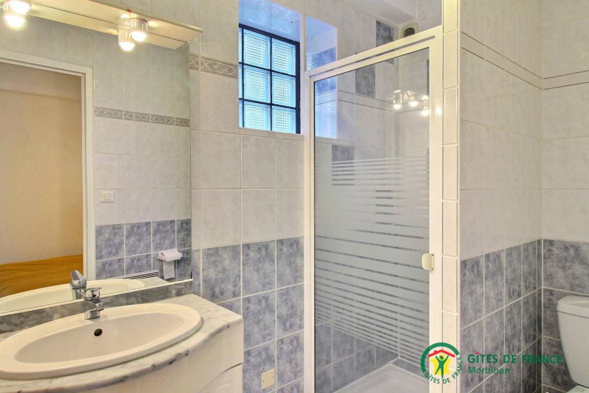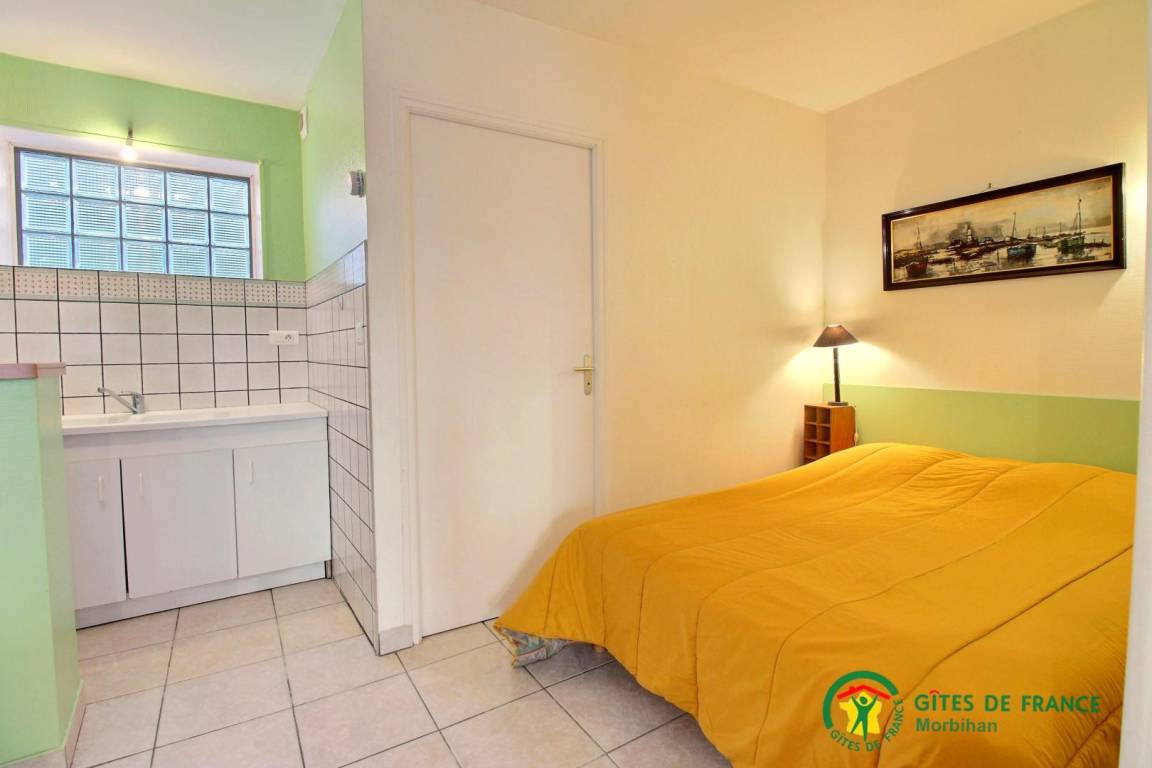 „Très bien pour nos besoins. Facile pour chien (carrelage partout). Lit confortable (nous avions pris nos draps et couettes). Salle de bain sans rien pour étaler ses affaires de toilette mais pour quelques jours ça va. Douche pratique quoiqu’impossible à aérer car la fenêtre a des dalles de verre. Nous faisions une semaine de voile donc nous rentrions mouillés, pas facile de retrouver le matin nos vêtements complètement secs et donc obligé d’allumer les radiateurs. Cuisinette sommaire mais nous n’en avions besoin que pour le petit déjeuner. Nous avons même pu accueillir des amis pour l’apéro dans le grand salon avec sofas. La propriétaire est charmante et nous a accueilli avec un délicieux far breton.“