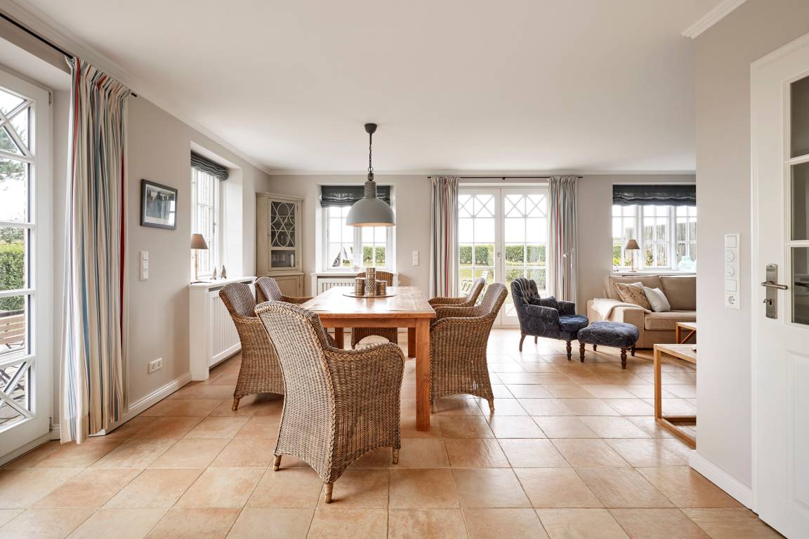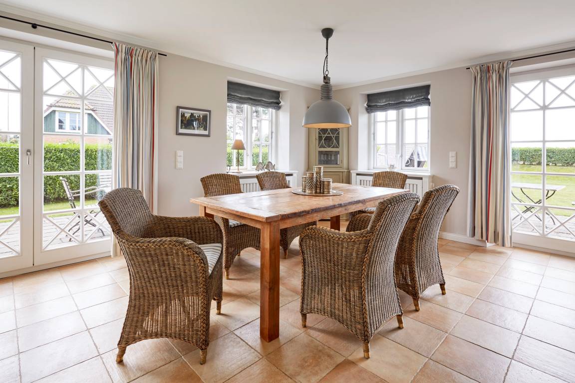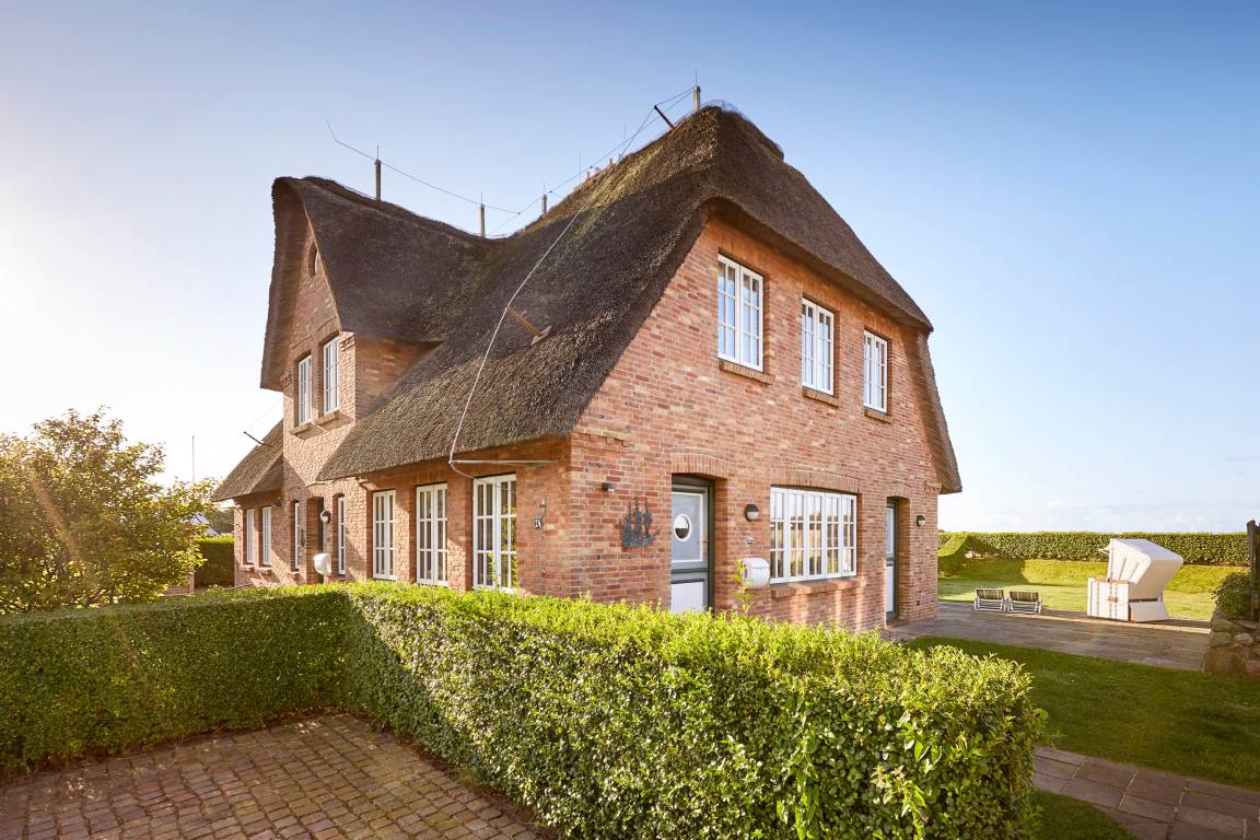 In dieser großzügigen Reetdachhaushälfte, in herrlicher Lage mit freiem Blick über die Landschaft auf das Meer, fühlt man sich sofort wohl und kann unbeschwerte, erholsame Ferien verbringen. Der hübsche Ort Borgsum ist nur wenige Minuten von Nieblum, das viele Einkaufsmöglichkeiten und Restaurants bietet, entfernt. Der Bäcker und ein Fahrradverleih sind praktisch gleich um die Ecke. Gegenüber der Borgsumer Mühle befindet sich ein Restaurant/Café mit Garten. Die zentrale Lage von Borgsum ermöglicht Ihnen, auch mal ohne Auto überall hinzukommen.