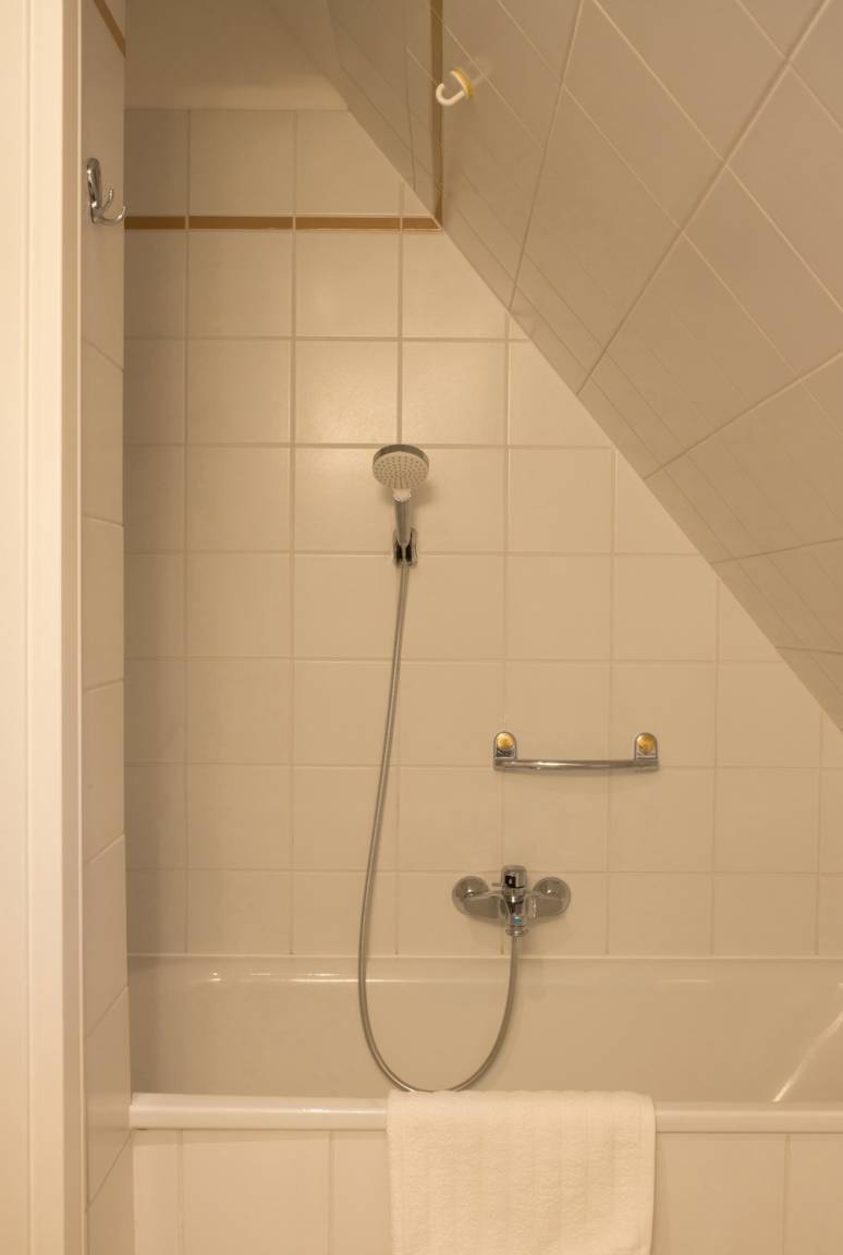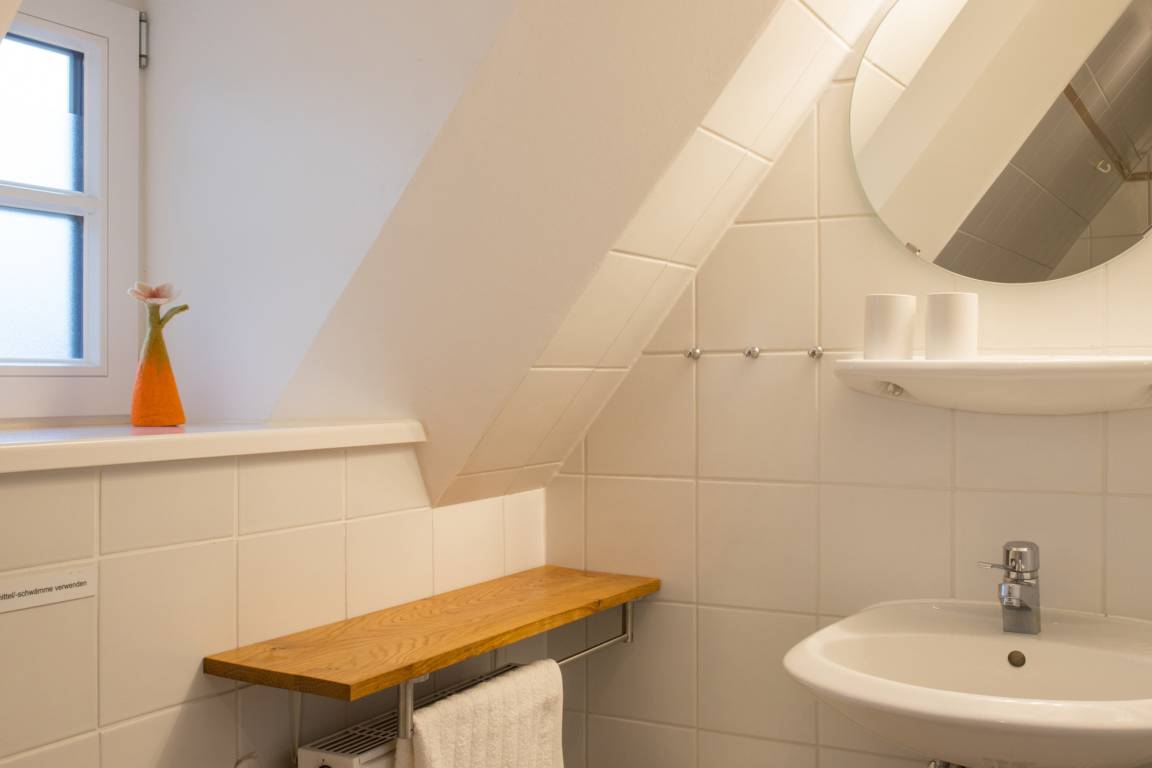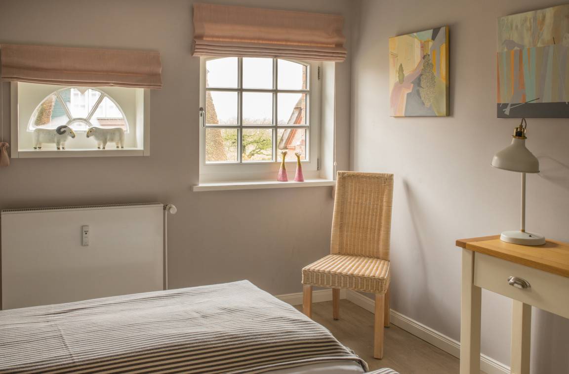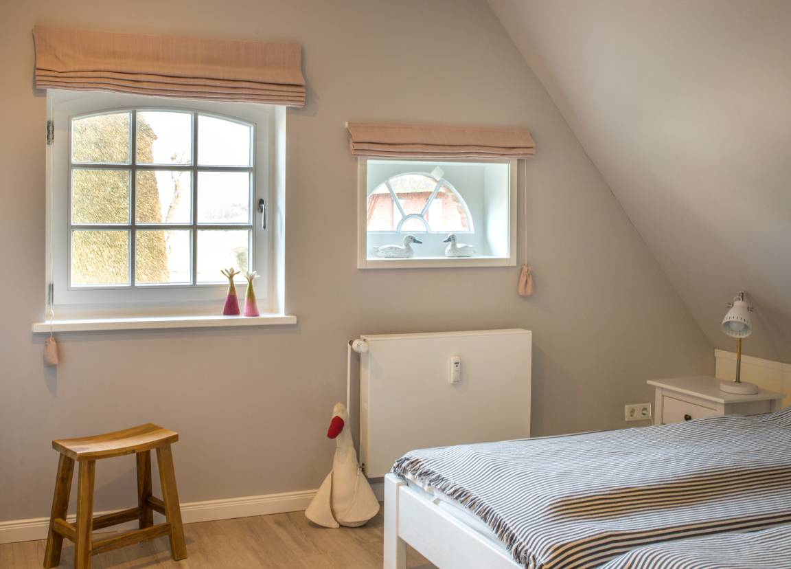 Im Obergeschoss: 1 Schlafzimmer mit Doppelbett (zweiter Fernseher), 1 Schlafzimmer mit 2 Einzelbetten, kleines Wannenbad/WC mit Fenster.