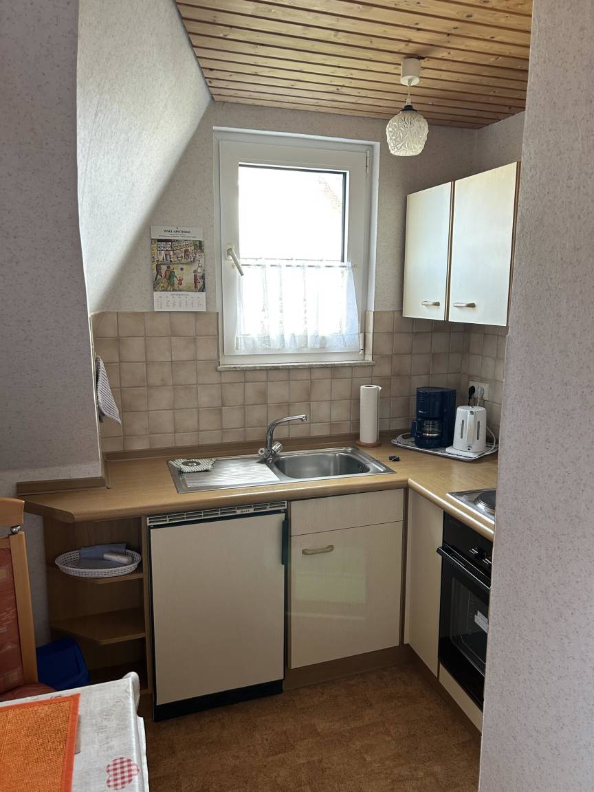 Die Ferienwohnung bietet einen komfortablen Rückzugsort für Erholungssuchende. Sie verfügt über ein einladendes Schlafzimmer mit einem Doppelbett, das einen erholsamen Schlaf garantiert. Eine modern ausgestattete Küchenzeile mit Elektro- und Gasherd, Kühlschrank und Kaffeemaschine lädt dazu ein, selbst Mahlzeiten zuzubereiten. Im Duschbad kann man sich nach einem erlebnisreichen Tag entspannen. Der Wohnbereich ist mit einem TV ausgestattet und sorgt für abwechslungsreiche Unterhaltung. Für die Verbindung zur digitalen Welt steht Internet ohne WLAN zur Verfügung. Durch die gut durchdachte Raumaufteilung und moderne Ausstattung bietet die Wohnung sowohl Gemütlichkeit als auch Funktionalität. Ideal für Singles oder Paare, die einen angenehmen Aufenthalt in einer ruhigen Umgebung suchen.