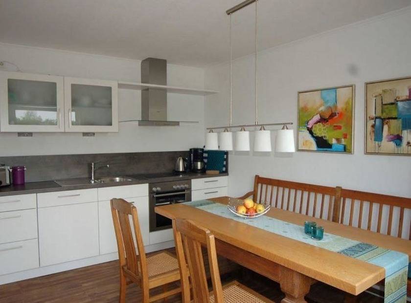 Die Küchenzeile ist ausgestattet mit Spülmaschine, Mikrowelle, Backofen, 4-Platten-Kochfeld, Dunstabzugshaube, Kaffeemaschinen (1 Senseo), Toaster, Mixer, Eier- und Wasserkocher.