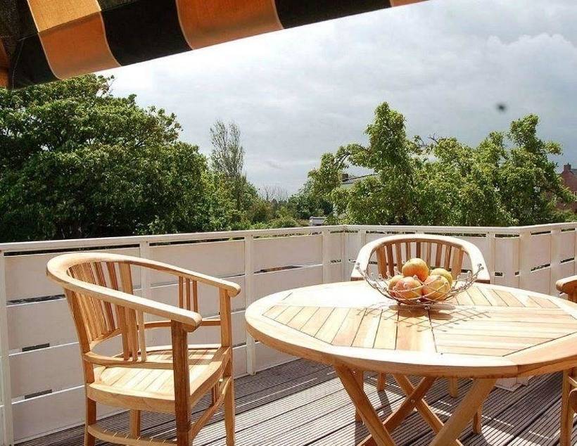 Sie verfügt über eine Dachterrasse in südöstlicher Ausrichtung, einen Strandkorb, Sonnenschirm und hochwertige Terrassenmöbel.