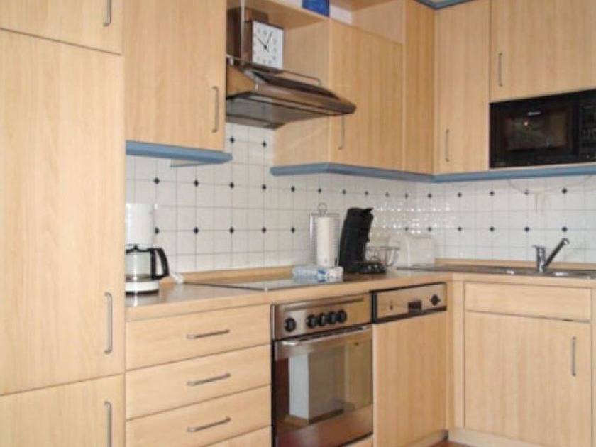 • komplett eingerichteter, offener Küchenbereich mit Kochfeld und Backofen, Spülmaschine, Kühlschrank, Mikrowelle, Kaffeemaschine, Gefrierbox, Toaster, uvm