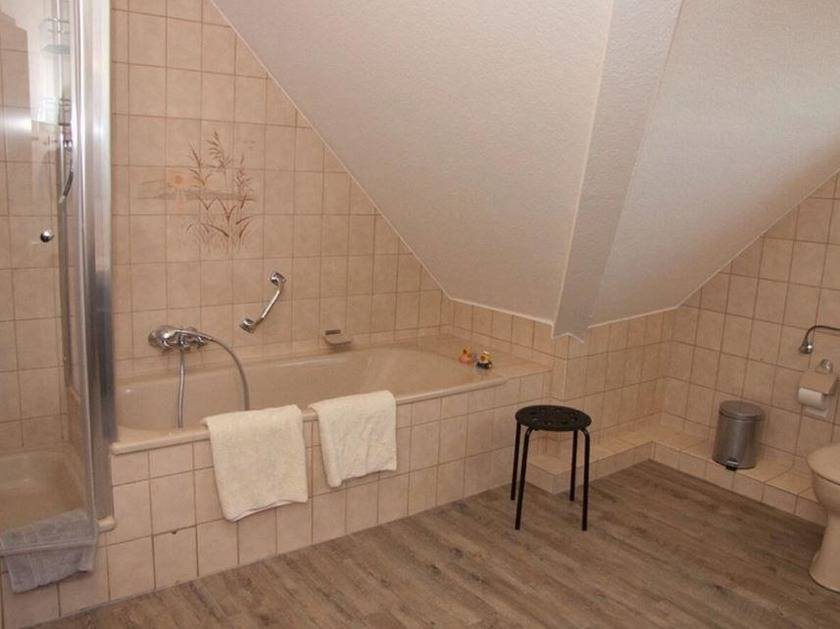 Die Nichtraucherwohnung ist kinderfreundlich ausgestattet (Babybett, Babyhochstuhl, Steckdosen mit integrierter Kindersicherung, Treppenschutzgitter). Sie besteht aus einem großen Schlafzimmer mit Doppelbett, zwei Kinderzimmern (je ein Einzelbett 0,9 x 2m), einem Wohnzimmer mit Esstisch, Couch und TV, einer Küche, einem Badezimmer mit Dusche und Badewanne und einem großzügigem Flur mit Spielecke.
