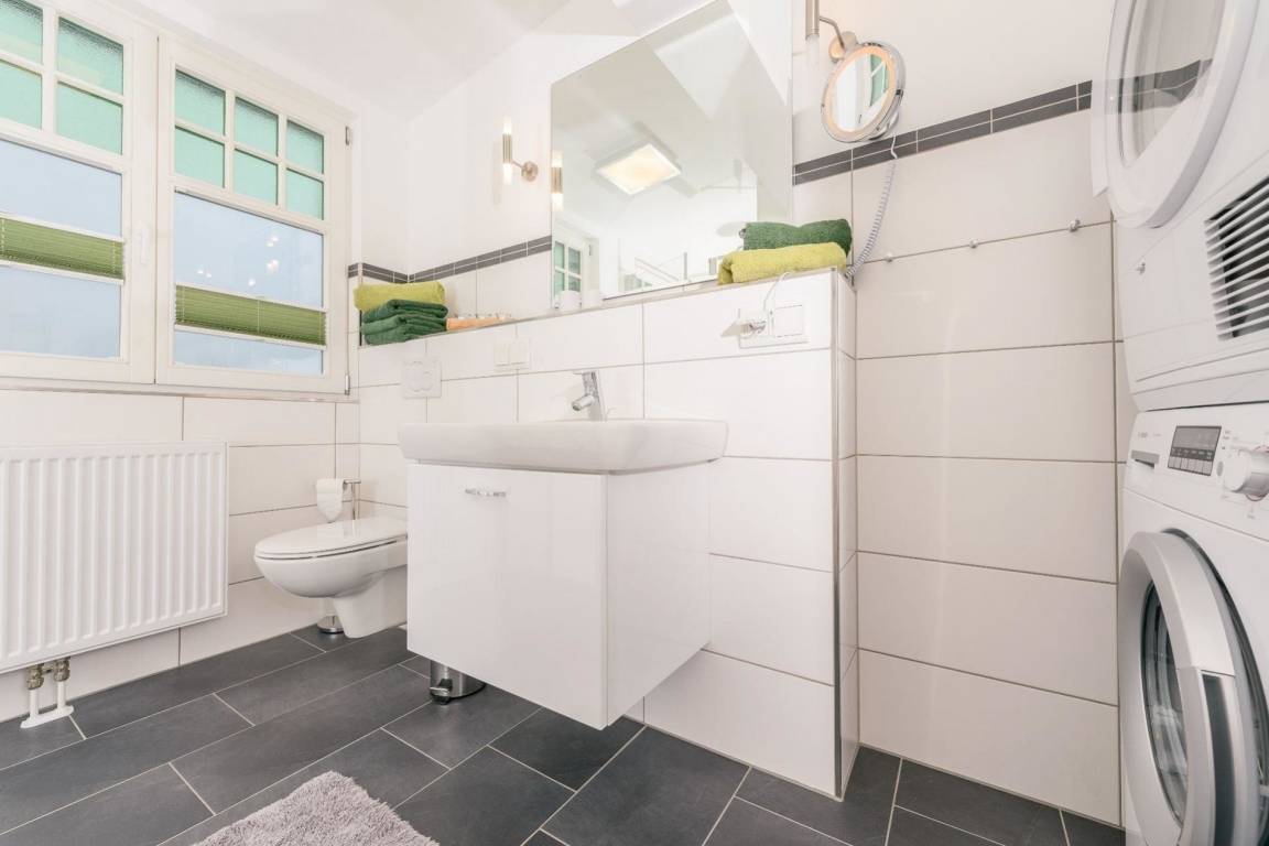 Eine Waschmaschine und Trockner steht in der Wohnung kostenfrei zur Verfügung.