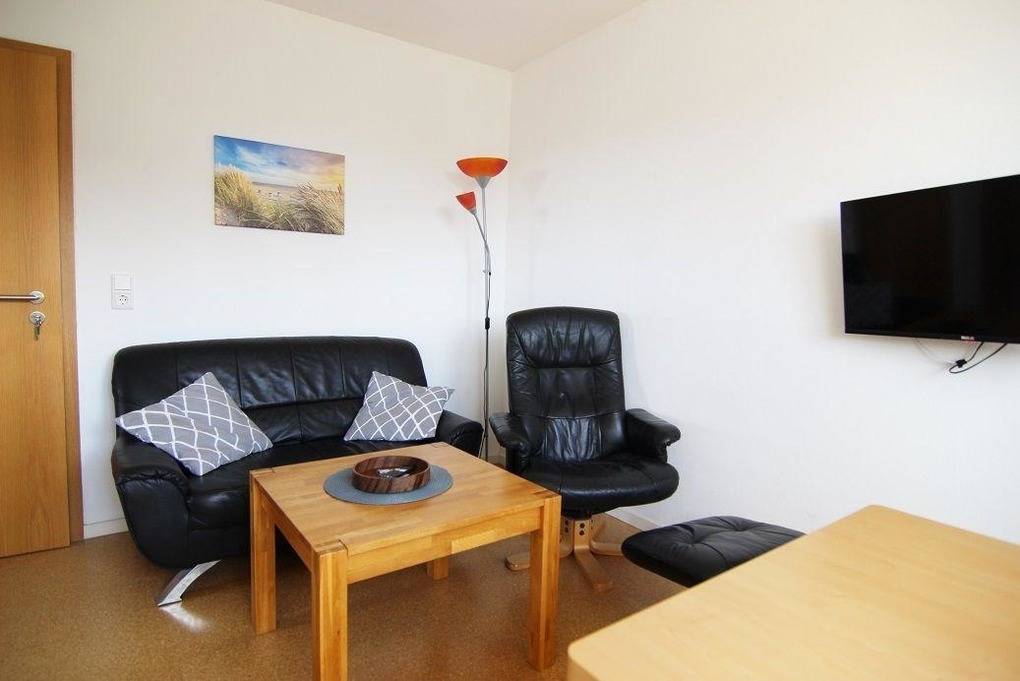 Die geräumige Ferienwohnung verfügt über eine moderne Einrichtung und bietet Platz für bis zu 4 Personen. Das helle Wohnzimmer lädt zum Entspannen ein und ist mit einem Flachbildfernseher ausgestattet. Die voll ausgestattete Küche bietet alles, was für die Zubereitung leckerer Mahlzeiten benötigt wird. Der Essbereich ist ideal für gemeinsame Mahlzeiten. Das Schlafzimmer verfügt über ein bequemes Doppelbett und ausreichend Stauraum. Ein weiteres Schlafzimmer bietet zwei Einzelbetten. Das Badezimmer ist mit einer Dusche ausgestattet und sorgt für Erfrischung nach einem langen Tag am Strand. Eine Terrasse lädt zum Entspannen im Freien ein und bietet einen tollen Ausblick auf die Umgebung. Die Ferienwohnung ist ideal gelegen, um die Umgebung zu erkunden und bietet den perfekten Rückzugsort für einen erholsamen Urlaub.