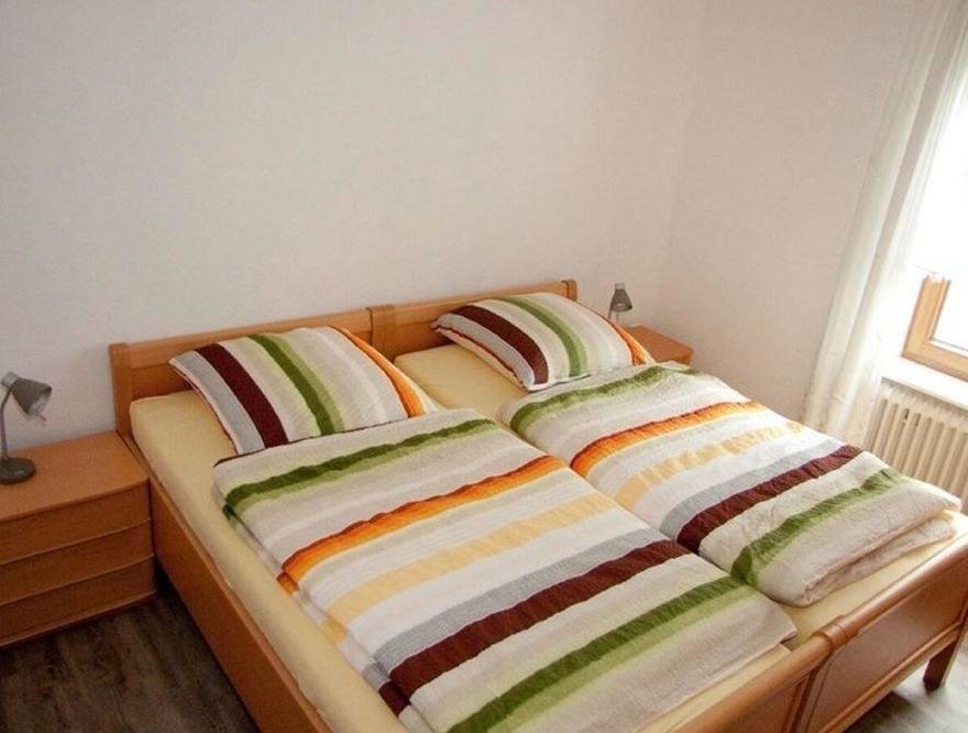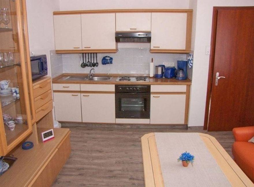 Die rollstuhlgeeignete, kinderfreundliche Wohnung besteht aus einem Schlafzimmer mit großem Doppelbett, einem Wohn-Esszimmer mit Küchenzeile, einem kleinen Flur und einem Duschbad.