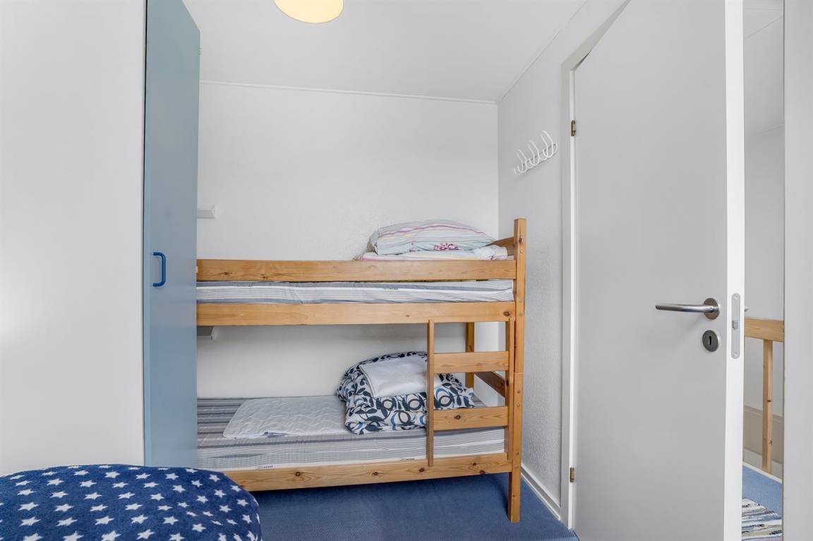 SchlafverhältnisseDie Schlafplätze verteilen sich auf 2 Schlafräume. 2 Schlafplätze in einem Doppelbett. 2 Schlafplätze in Einzelbetten. 2 Schlafplätze in einem Etagenbett. Ferner steht ein Kinderbett zur Verfügung.