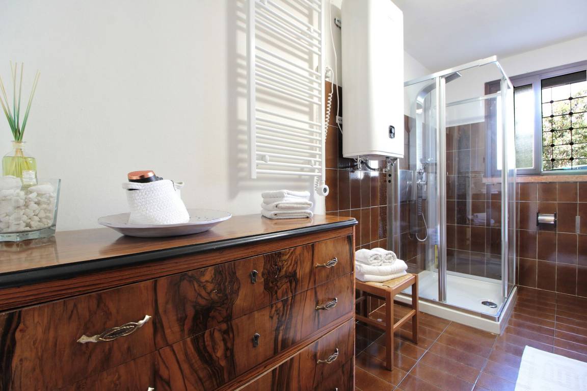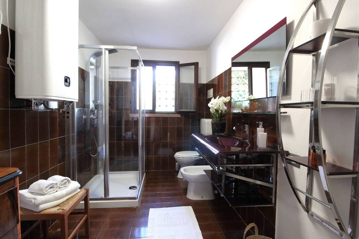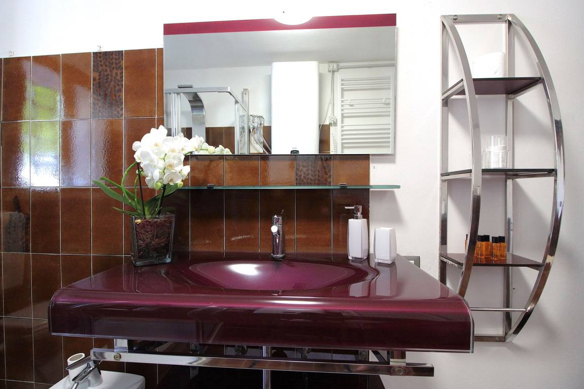 Badezimmer: Waschbecken, WC, Bidet, Dusche, Fön, WiFi Internet.