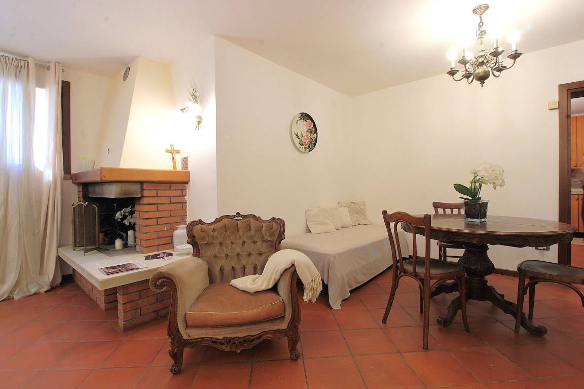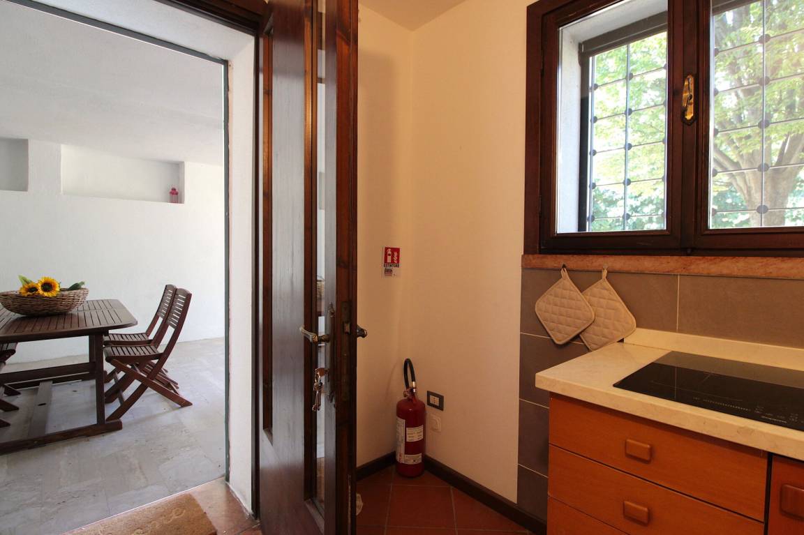 Küche: gut ausgestattete Küche, Esstisch, Kühlschrank, Tiefkühler, Herd, WiFi Internet, Ausgang auf den Garten.