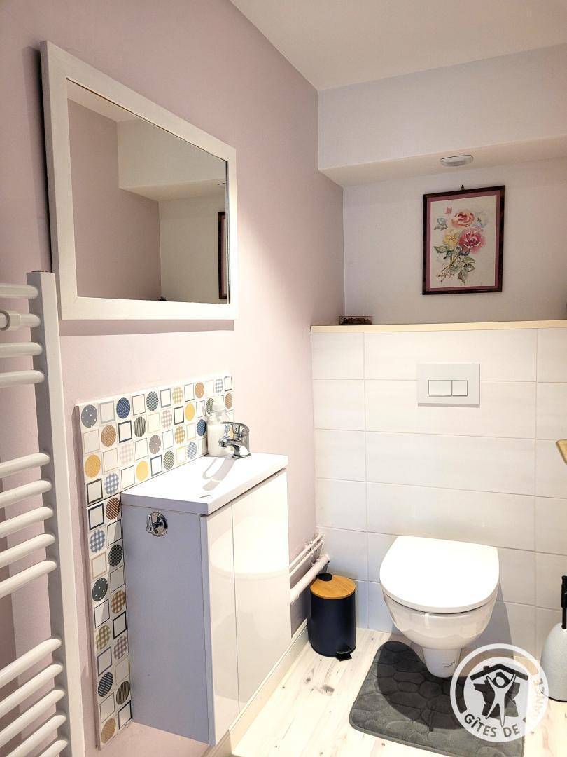 „Nous avons passé un agréable séjour. La maison est confortable et fonctionnelle. Malgré que la pièce principale ne soit pas très lumineuse. La propriétaire est très sympathique et nous a accueilli chaleureusement avec des fleurs dans les vases et des boissons fraîches. Nous recommandons ce gîte.“