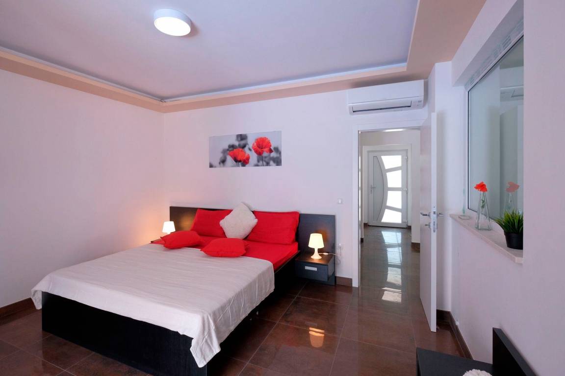 The villa has 4 bedrooms (3 bedrooms with 180x200 beds and 1 bedroom with 2 beds 90x200) and 3 bathrooms.