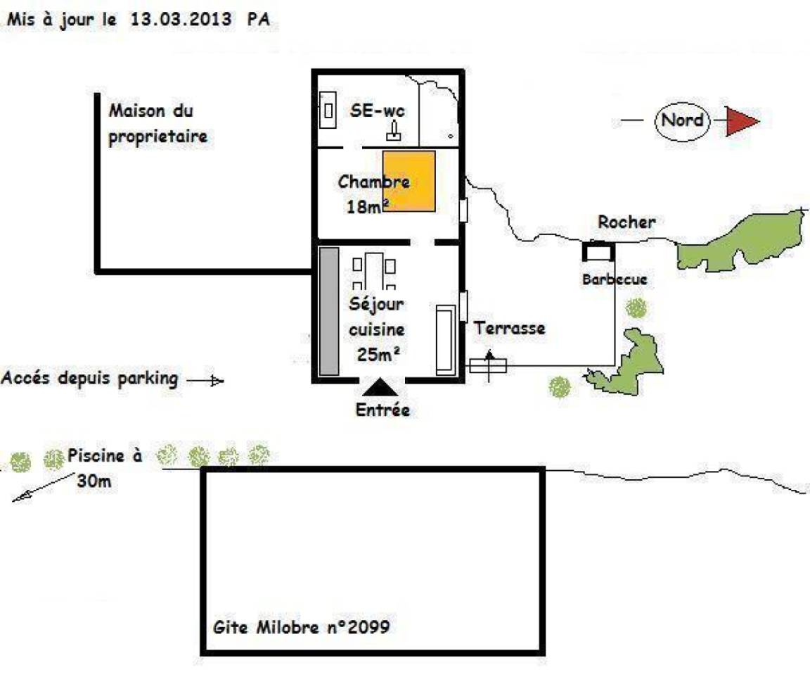 „Le gîte du Petit Milobre est très adapté pour un couple car les pièces sont en enfilade: Salle d'eau - toilettes, puis chambre, et enfin cuisine-séjour. Le lieu est exceptionnel: Magnifique, très bien paysagé, offrant de belles promenades et diverses baignades: Piscine ou petit lac. Il est idéal si l'on veut se couper du monde tourbillonnant car très isolé. L'accueil est cordial et chaleureux. Les propriétaires ont restauré des ruines avec goût et intelligence. L'unique bémol pour ce gîte concernerait des personnes craignant l'humidité, car la très belle salle d'eau composée à même la roche de la montagne induit une forte humidité dans les pièces, heureusement récupérée par un déshumidificateur.“
