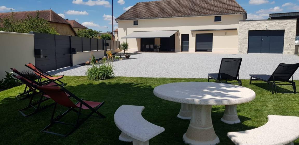 „Séjour très agréable dans ce très beau gîte. Tout est parfait: Décoration, agencement, fonctionnalité, propreté, accueil. Le jardin est vraiment soigné et invite à la détente.“