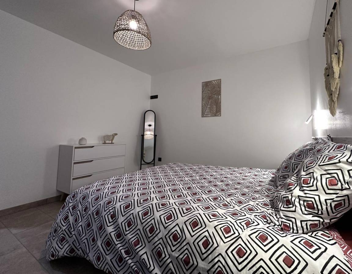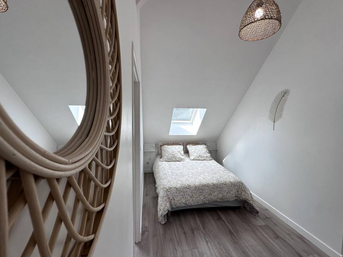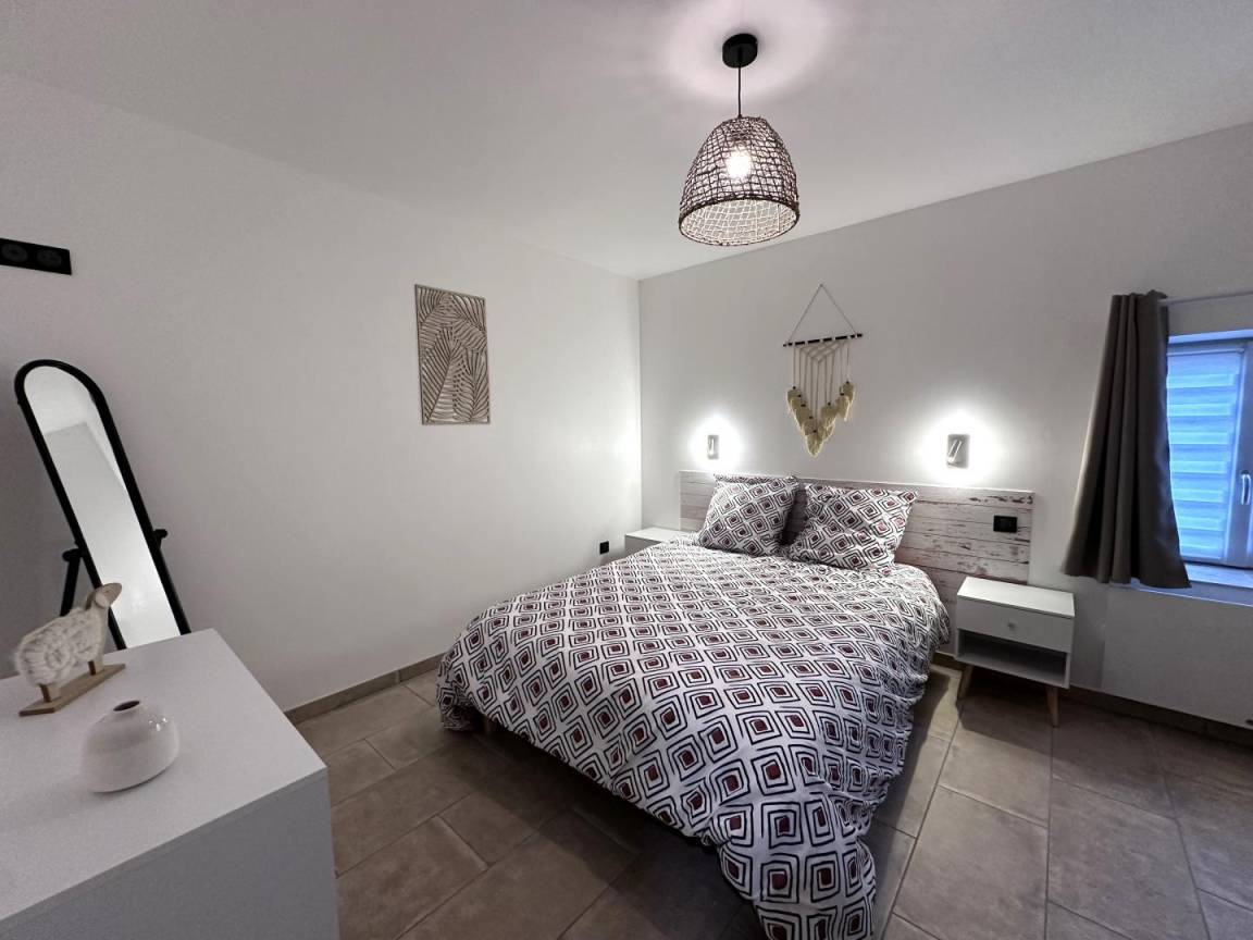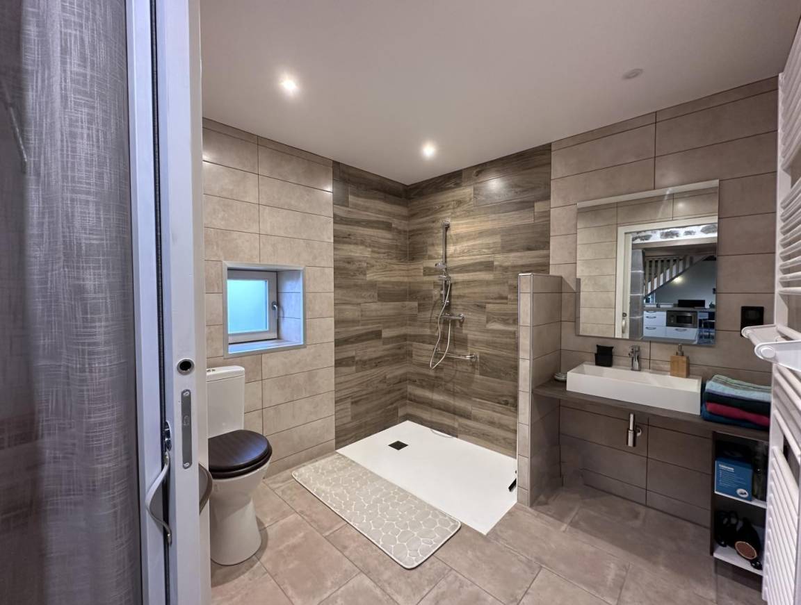 Das Ferienhaus ist mit seinem Schlafzimmer (1 Bett 140 x 190 cm) und seinem Badezimmer im Erdgeschoss für Personen mit eingeschränkter Mobilität zugänglich. Auf der Terrasse können S