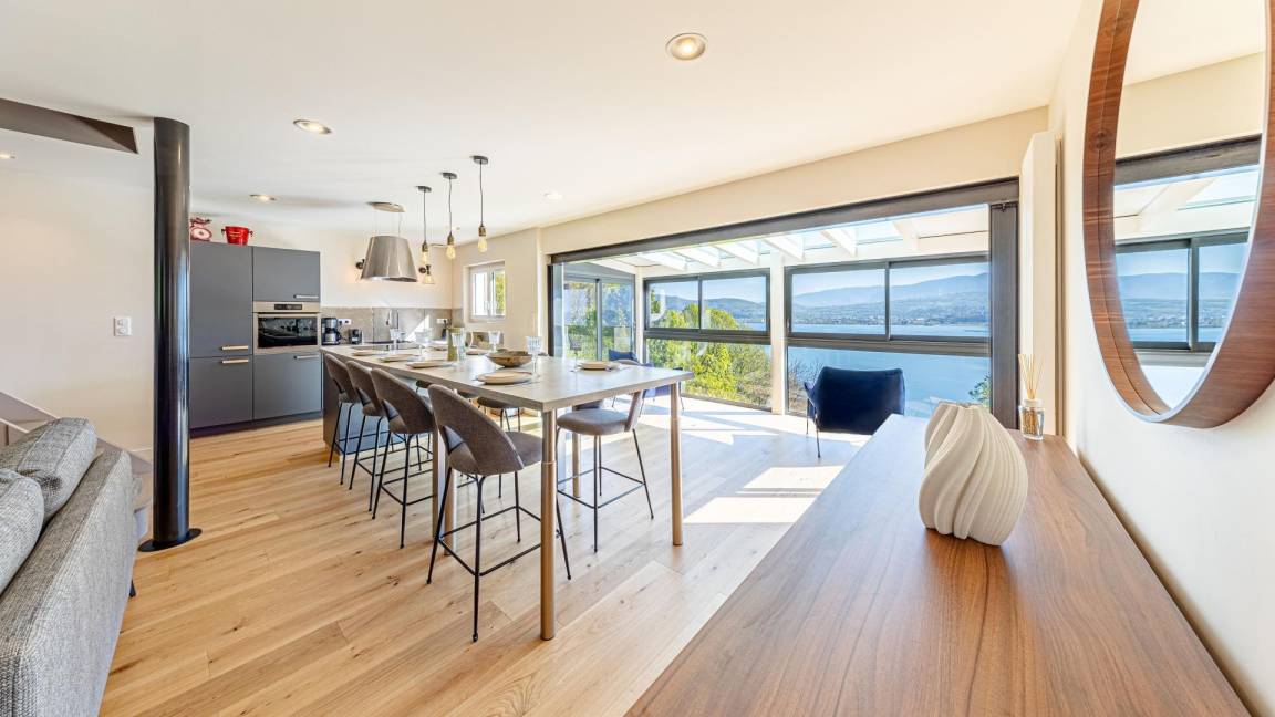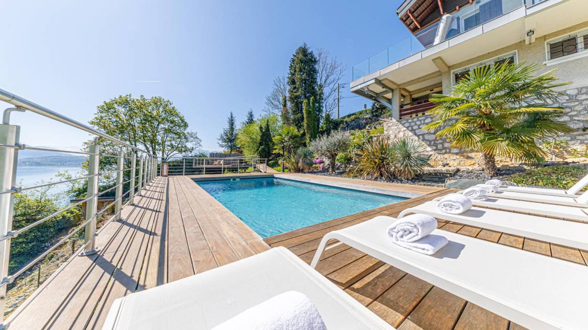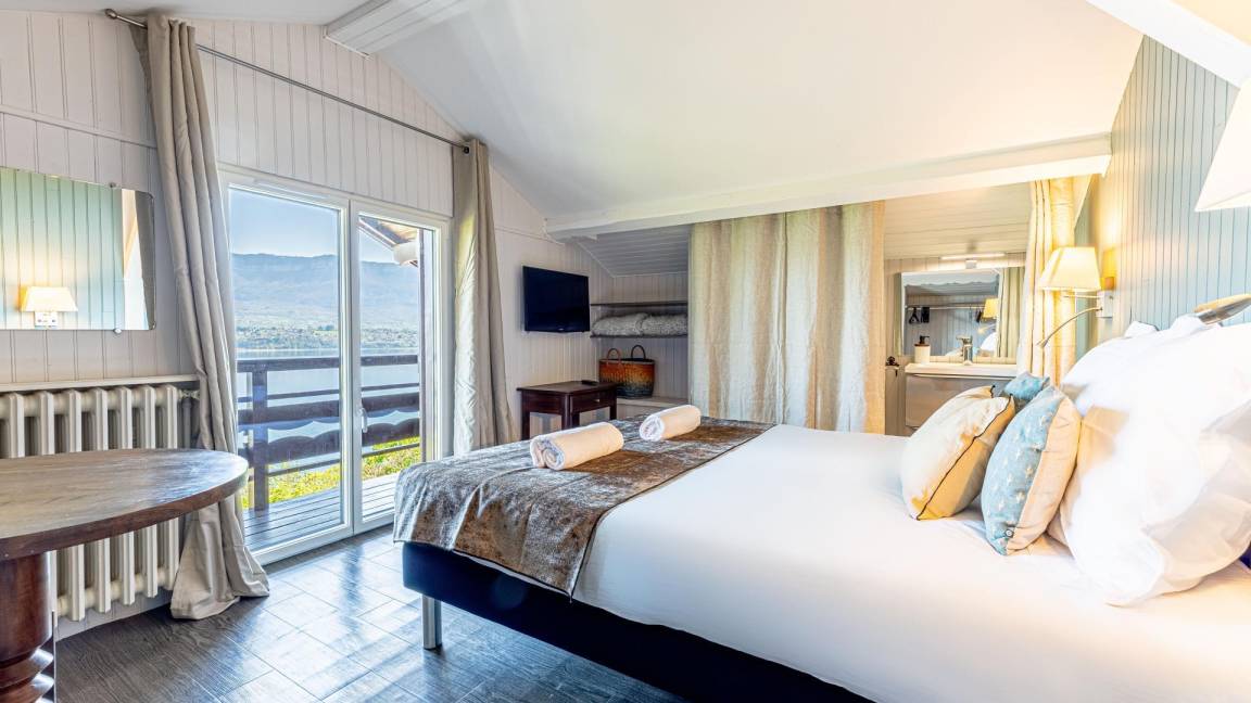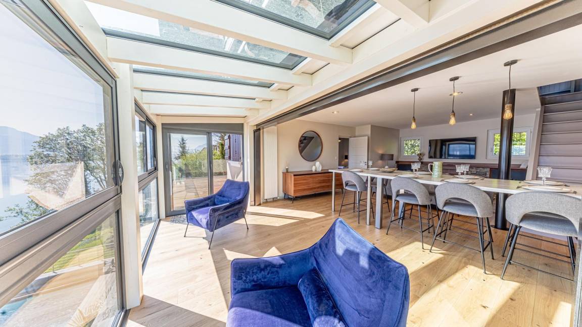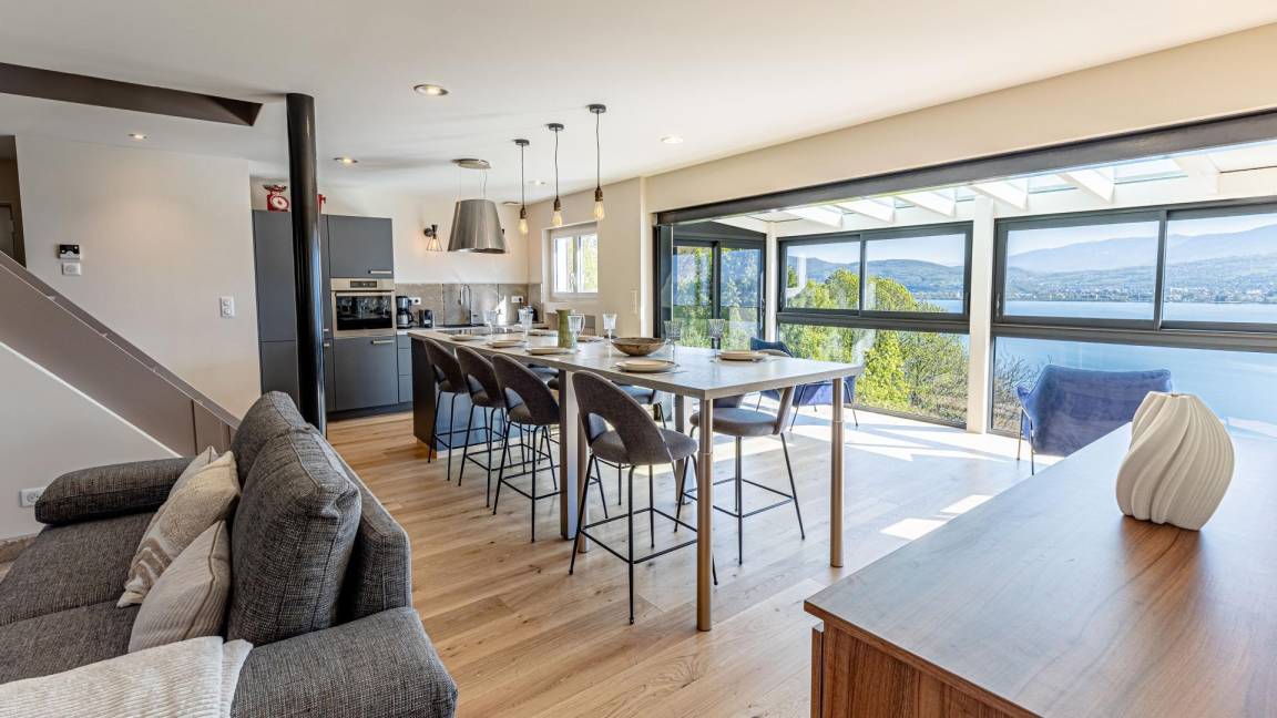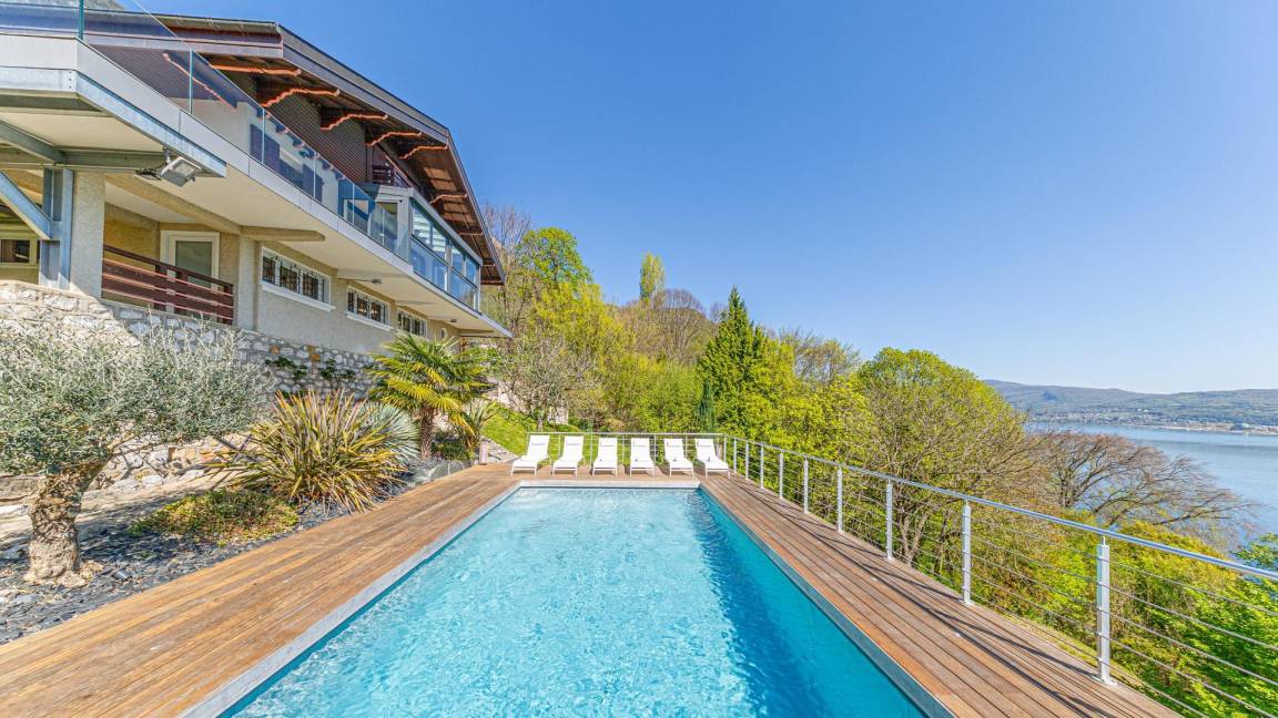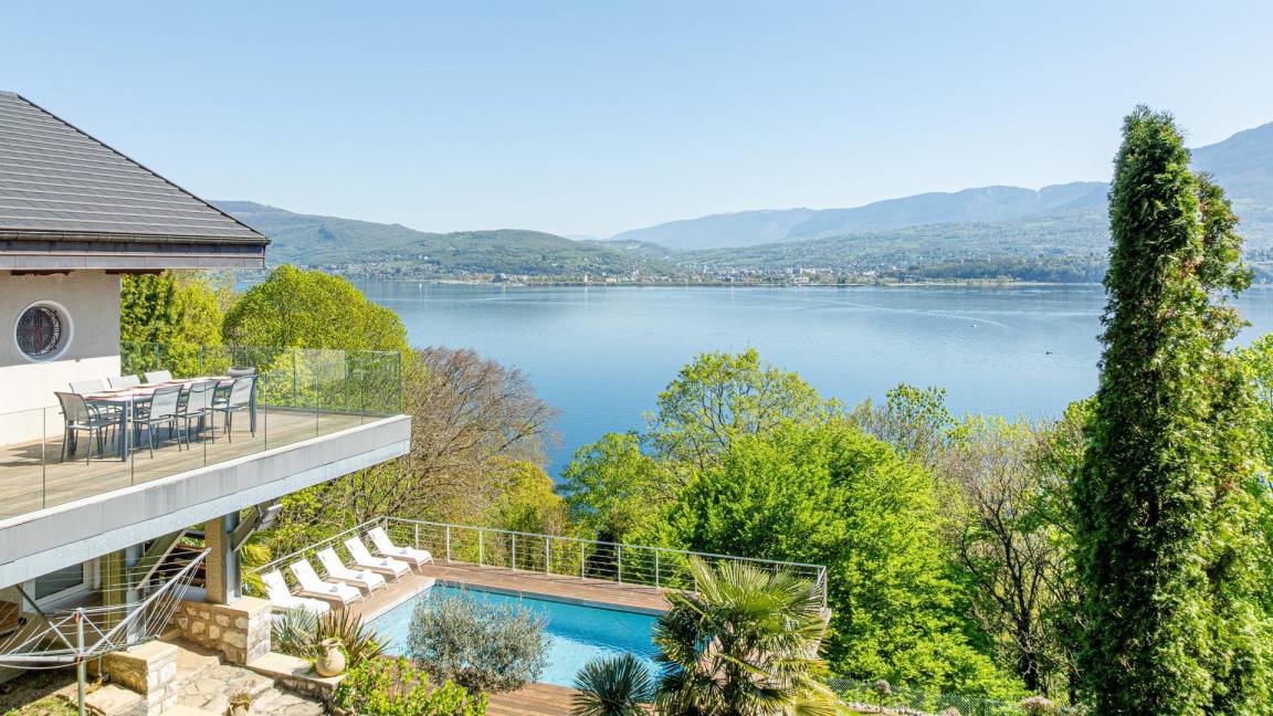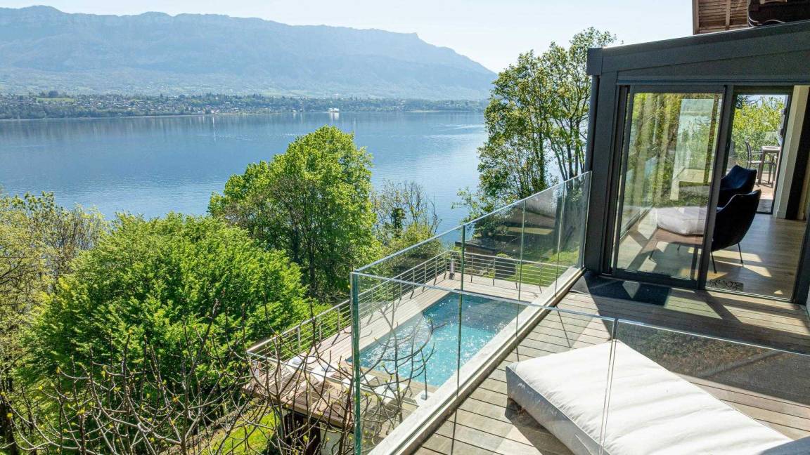 Vom Balkon der Lézardière du Lac überblickt man den Lac du Bourget und genießt einen herrlichen Blick auf die blaue Weite, umgeben von Gipfeln. Das restaurierte Familienhaus bietet vier Schlafzimmer (zwei davon mit Bad), ein Spielzimmer, einen Swimmingpool auf der Terrasse, der den Eindruck vermittelt, in den azurblauen Horizont einzutauchen, eine Yoga-Plattform im Freien und vor allem eine atemberaubende Aussicht. Darüber hinaus garantieren erstklassige Services einen erholsamen Aufenthalt.