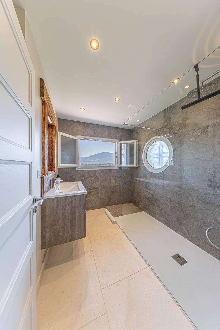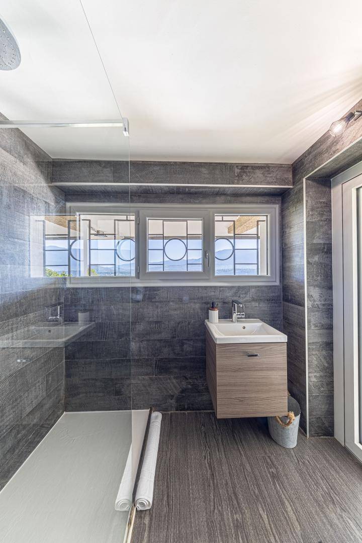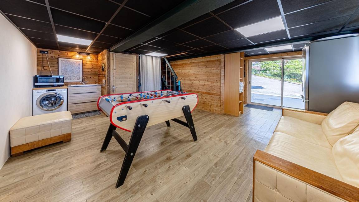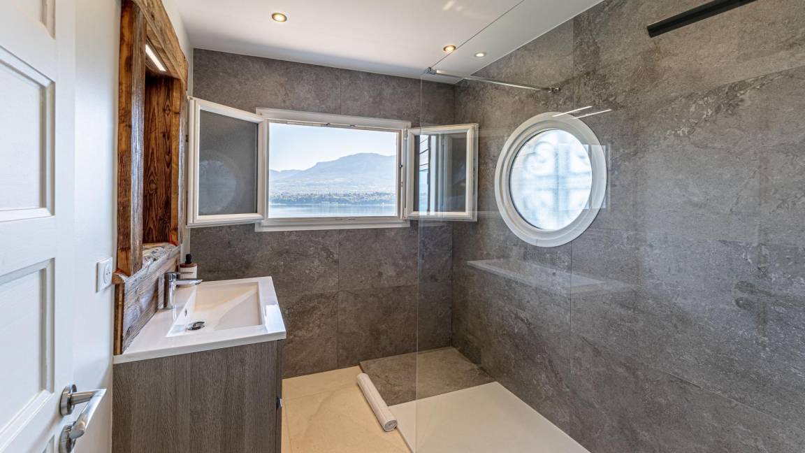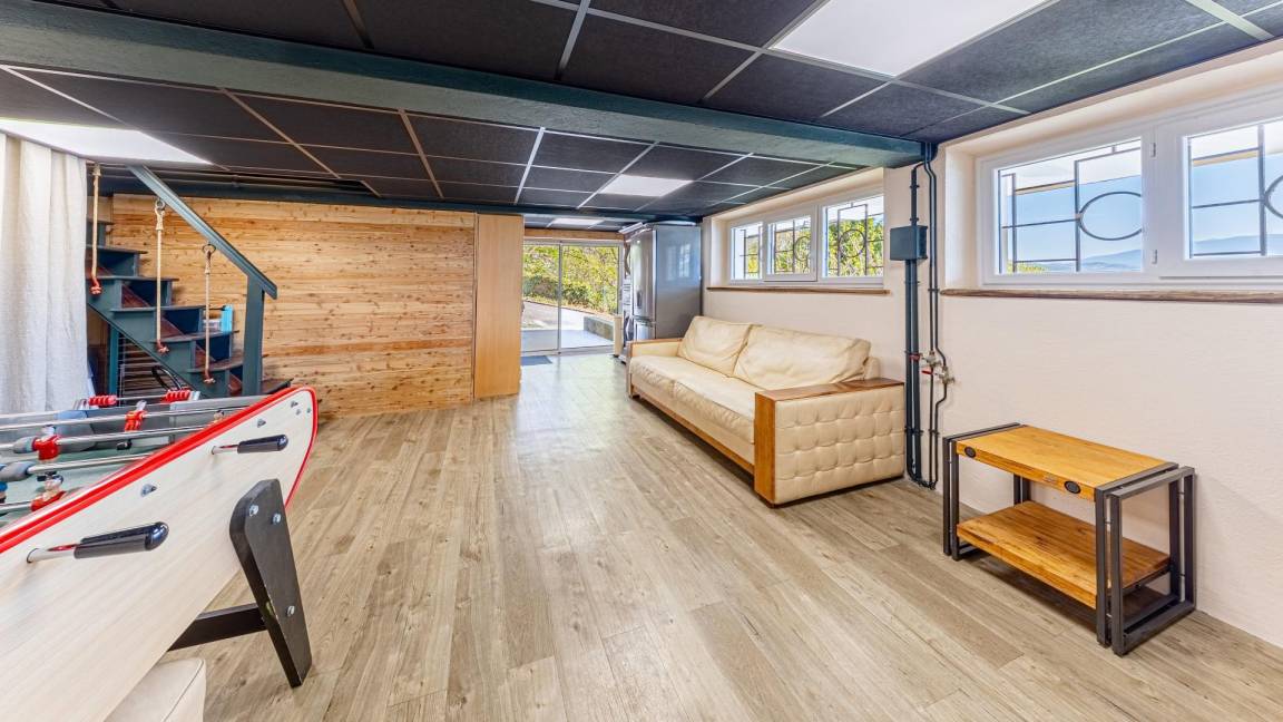 Freistehende Villa auf 3 Ebenen. Im Erdgeschoss: 1 Schlafzimmer (1 Doppelbett 160x200 cm) mit eigenem Bad (Dusche), separates WC, Aufenthaltsraum mit Kickertisch (Waschmaschine). Im 1. Stock (Zugang vom Parkplatz über eine Außentreppe): Wohnküche, separates WC, 1 Schlafzimmer (1 Doppelbett 140x190 cm) mit eigenem Bad (Dusche). Im 2. Stock: 2 Schlafzimmer (2 Einzelbetten 80x200 cm / 1 Doppelbett 160x200 cm mit Waschbecken). Privater Außenpool, beheizt von Mai bis September, Yoga-Plattform, Terrasse mit Panoramablick auf den See. 3 Parkplätze in der Einfahrt. Bitte beachten: Die beiden Badezimmer sind nicht separat.
