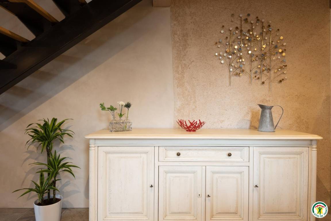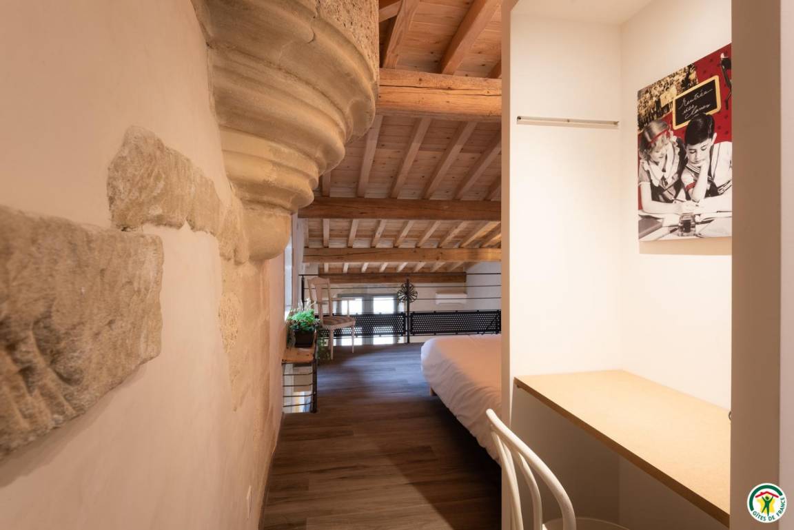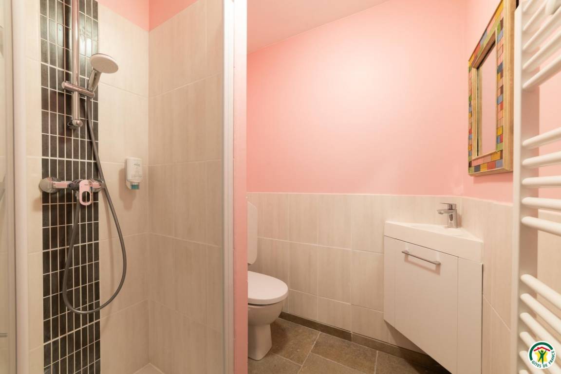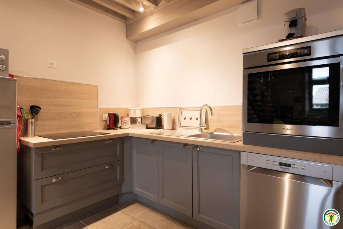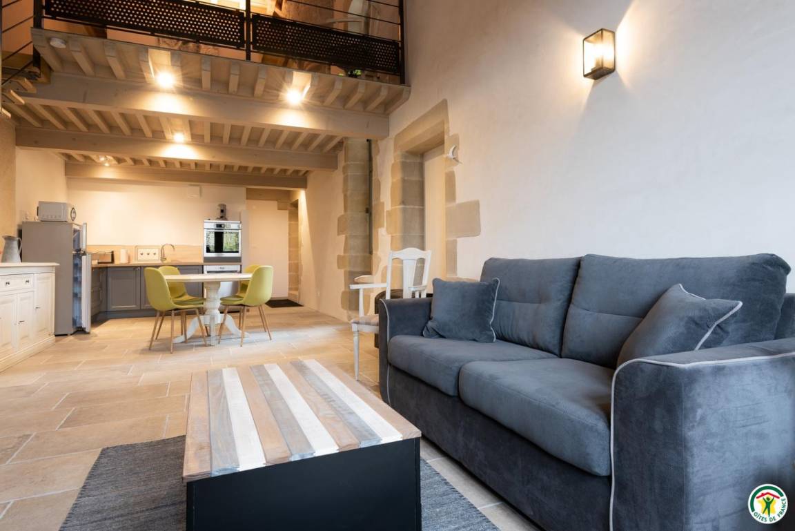 Die Gîte Tour befindet sich im 1. Stock mit separatem Eingang. Die großzügige Höhe dieses Studios wurde ausgenutzt, eine zusätzliche Etage wurde auf einem Zwischengeschoss konzipiert. Die mit ökologischen Materialien renovierte Gîte Tour ist wie folgt eingerichtet: angenehmes und helles Wohnzimmer mit Küchenbereich, Wohnzimmer und Loungebereich. Kleines Badezimmer mit Toilette. Im Zwischengeschoss: 180x200cm großes Bett, Schreibtisch, Dusche und WC. Ein Balkon steht Ihnen zur Verfügung.