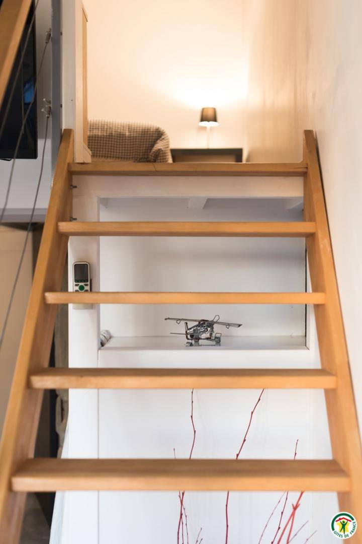 Die Ferienunterkunft befindet sich in einem Flügel des Hauses des Vermieters. Erdgeschoss: Küchenzeile, zum Wohnzimmer (Schlafsofa) hin offen, Bad (Dusche)/WC. 1. Stock: Zwischengeschoss (1 Bett 140 cm).