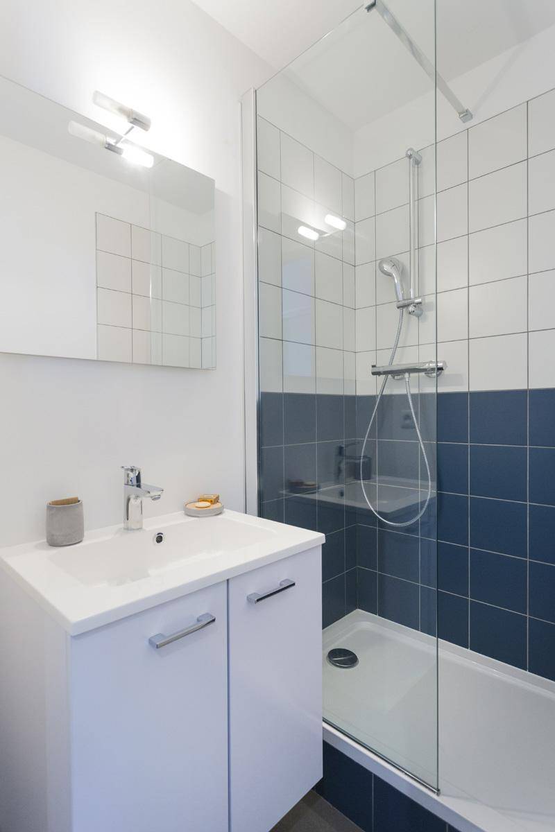 Fläche von ungefähr 30 m². 7te Etage. Orientierung : Ost. Wohnzimmer mit einfache Klappschlafcouch, Ausziehschlafcouch für 2 Personen. offener Schlafbereich mit Einzelbett, 2 Stockbetten. Kochnische mit Wasserkocher, Kaffeemaschine, kleiner Backofen mit Mikrowellenfunktion, Toaster, Geschirrspülmaschine, Herdplatten, Kühlschrank. separates WC. Badezimmer mit Badewanne. Balkon. Die oberen Betten sind nicht für Kinder unter 6 Jahren geeignet.