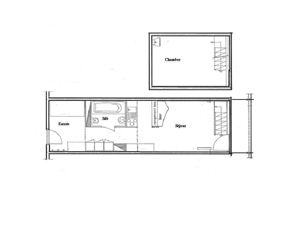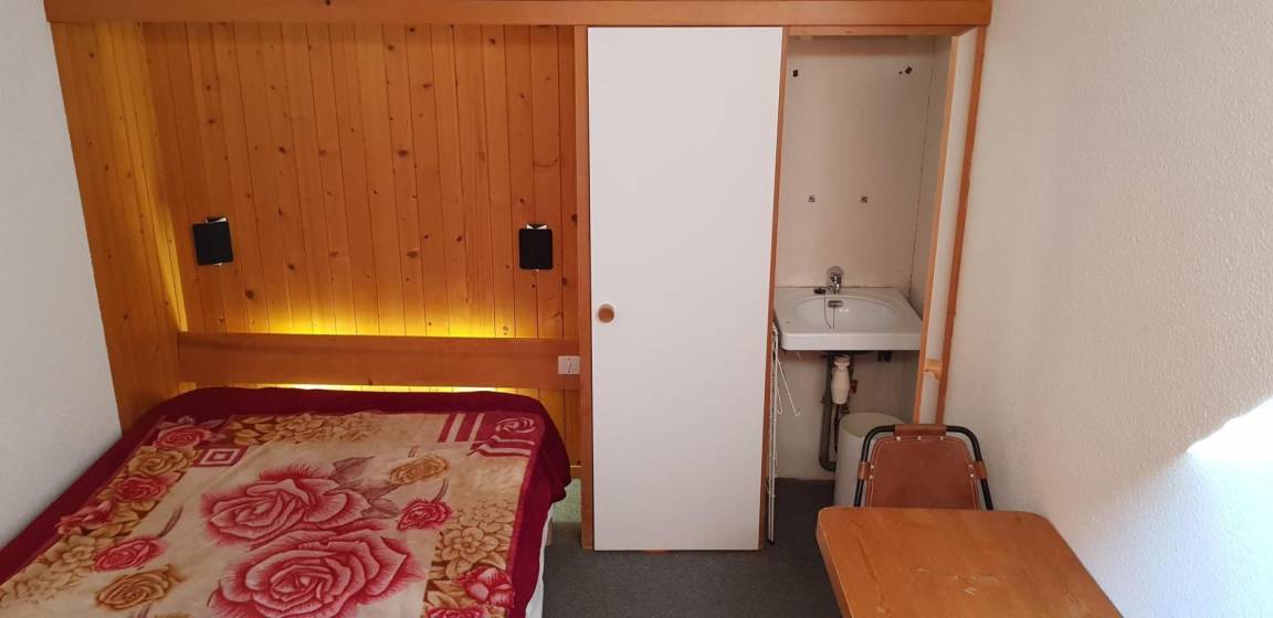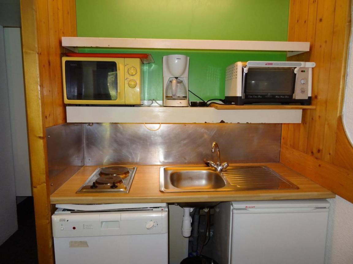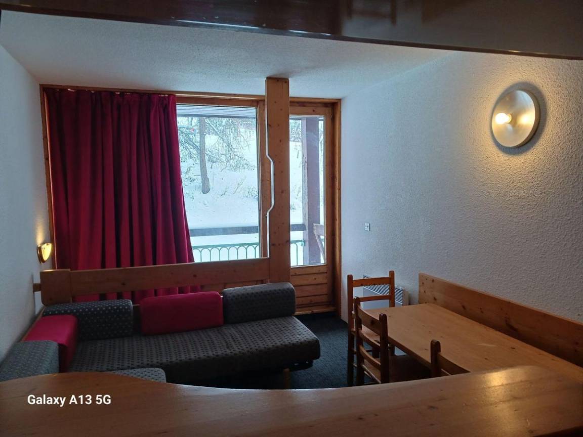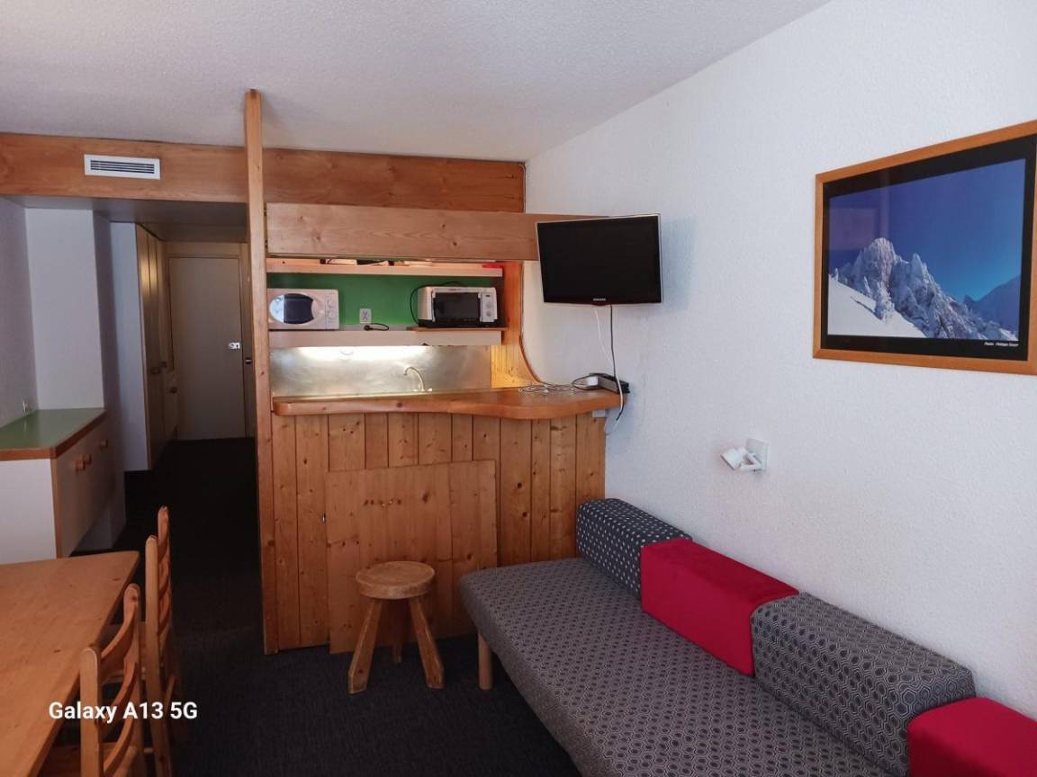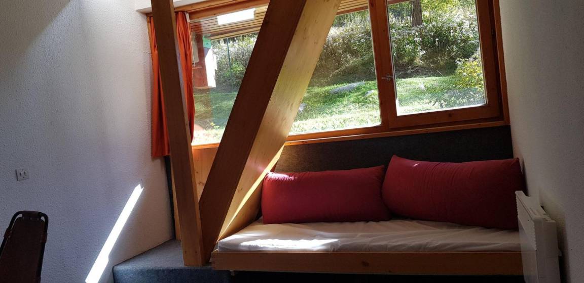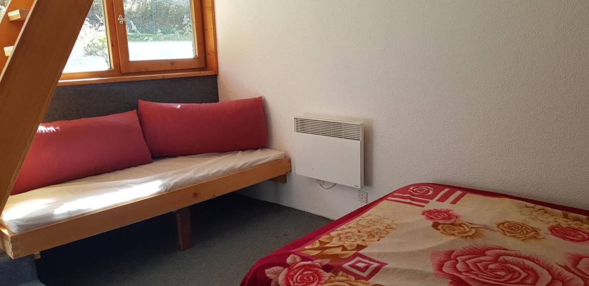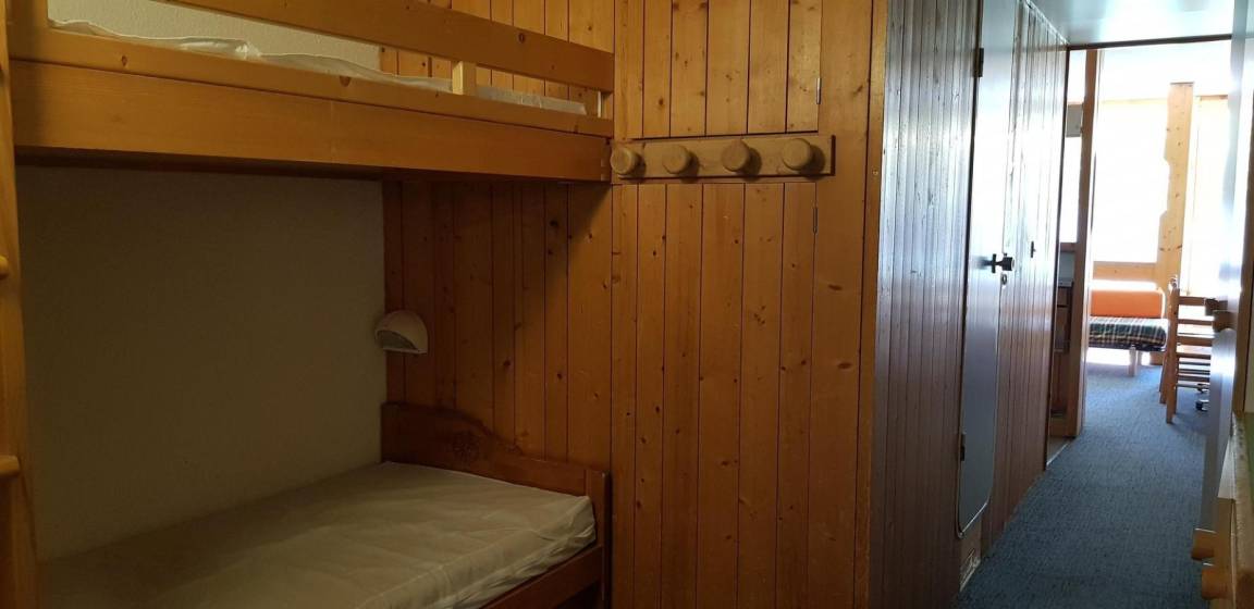 Fläche von ungefähr 42 m². 8te Etage. Orientierung : Süd, West. Blick berg und Tannen. Niveau 0 : Wohnzimmer mit 2 Einzelbetten. offener Schlafbereich mit 2 Stockbetten, Ausziehbett. Kochnische mit Backofen, Geschirrspülmaschine, Mikrowellenherd, 4 elektronische Herdplatten, Kühlschrank. Badezimmer mit Badewanne, WC. Balkon. Niveau 1 : Schlafzimmer mit Doppelbett. Die oberen Betten sind nicht für Kinder unter 6 Jahren geeignet.