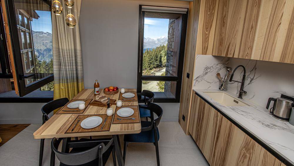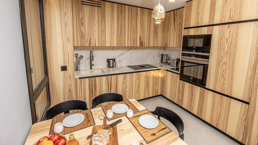 Fläche von ungefähr 64 m². 1te Etage. Orientierung : Süd-West, West. Blick panorama. Diele. Wohnzimmer mit . Schlafzimmer mit Doppelbett (160x200), , WC. Schlafzimmer mit 2 Einzelbetten (90x190). offener Schlafbereich mit 2 Stockbetten (90*190). Küche mit Wasserkocher, Kaffeemaschine, Bügeleisen, Backofen, Toaster, Mikrowellenherd, Mixer, Induktionsherdplatten, Kühl-Gefrier-Kombination. Waschräume mit Dusche. WC. Terrasse mit Stuhl, Tisch. Die oberen Betten sind nicht für Kinder unter 6 Jahren geeignet.
