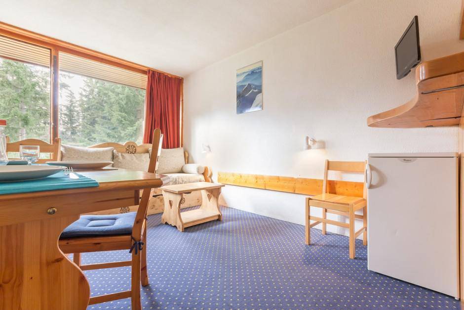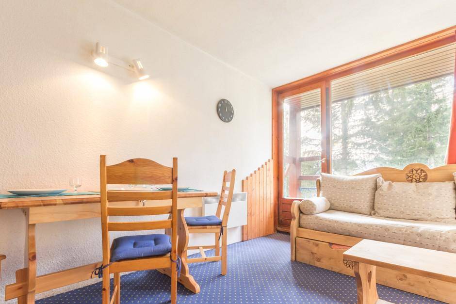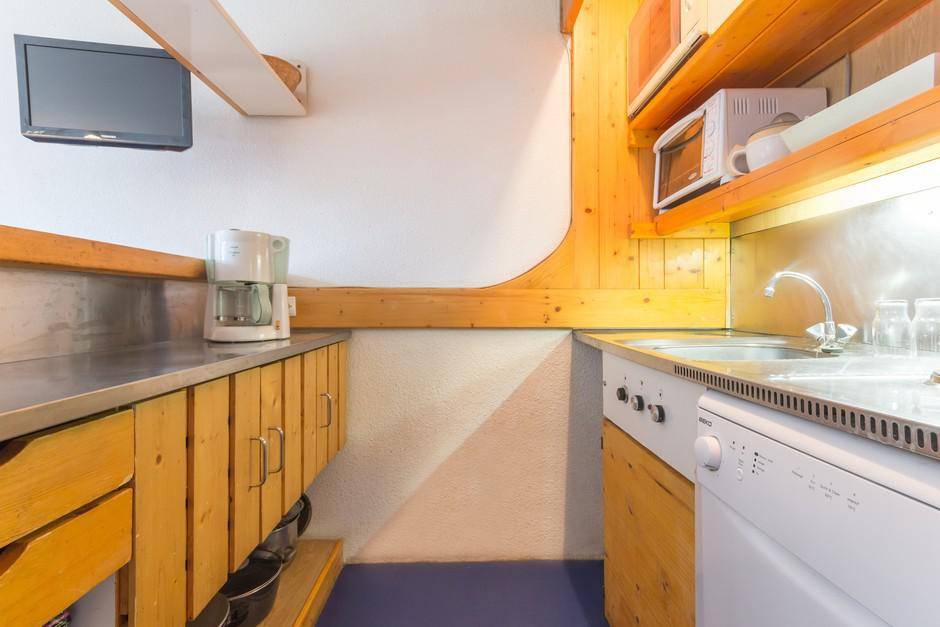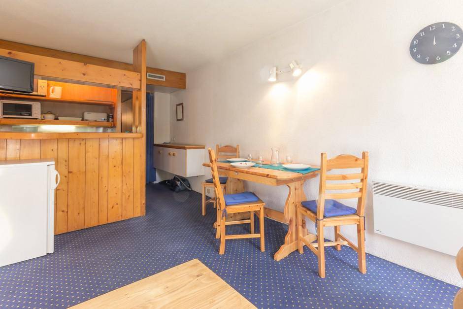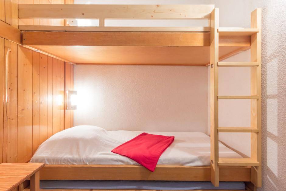 Fläche von ungefähr 28 m². 11te Etage. Orientierung : Nord, Nord-Ost, Ost. Wohnzimmer mit einfache Klappschlafcouch, Ausziehschlafcouch für 2 Personen. offener Schlafbereich mit 2 Stockbetten, Ausziehbett. Kochnische mit Kaffeemaschine (filtre), Toaster, Geschirrspülmaschine, Mikrowellenherd, 2 elektronische Herdplatten, Kühlschrank. Badezimmer mit Badewanne, WC. Balkon. Die oberen Betten sind nicht für Kinder unter 6 Jahren geeignet.