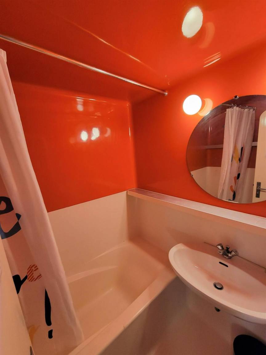 Fläche von ungefähr 25 m². 9te Etage. Orientierung : Nord, Ost. Wohnzimmer mit 2 Sofabetten (80), TV. offener Schlafbereich mit 2 Stockbetten (80). Kochnische mit Wasserkocher, Kaffeemaschine (filtre), Toaster, Geschirrspülmaschine, Mikrowellenherd, kleiner Backofen, 2 elektronische Herdplatten, Kühlschrank. Badezimmer mit WC. Balkon. Die oberen Betten sind nicht für Kinder unter 6 Jahren geeignet.