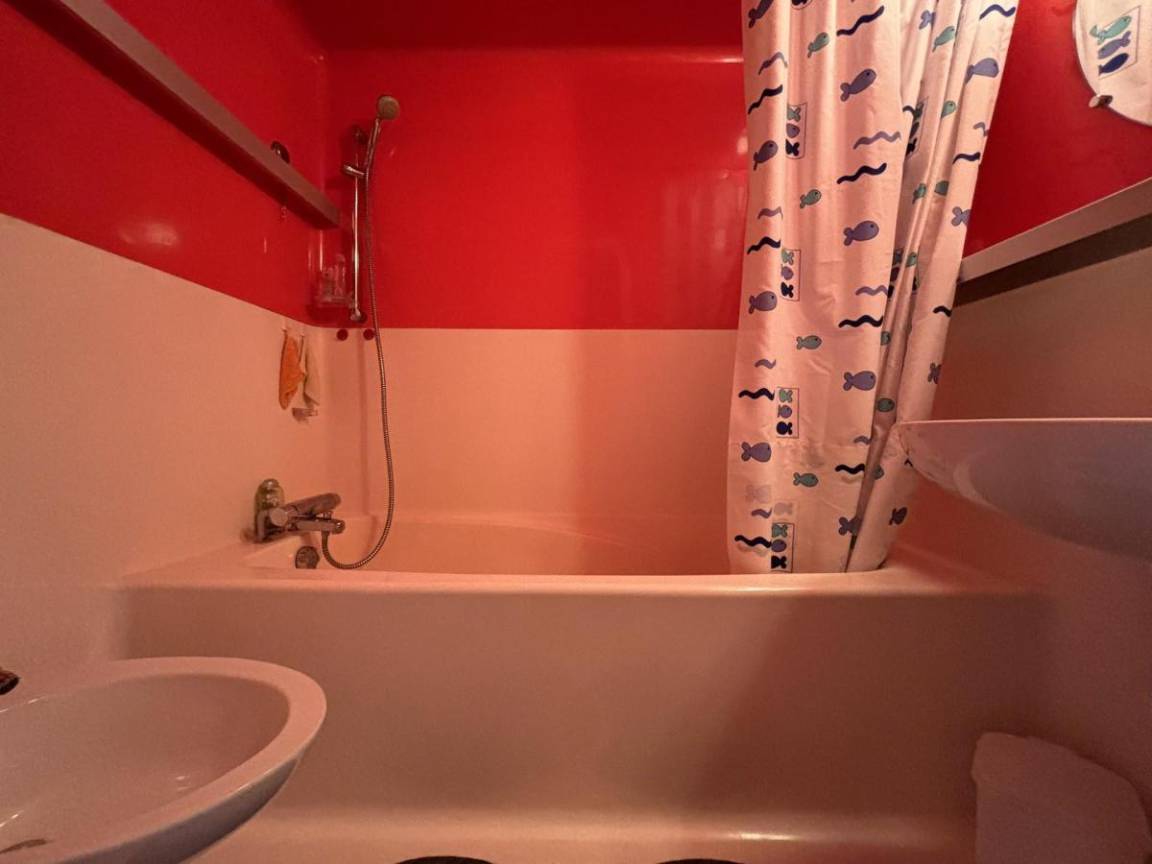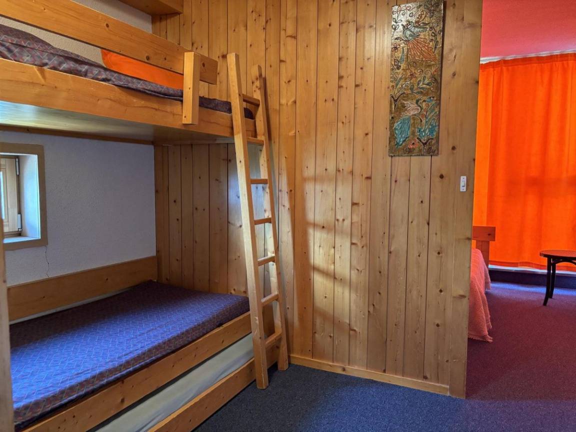 Fläche von ungefähr 45 m². 5te Etage. Orientierung : Nord, Süd, West. Wohnzimmer mit 2 Sofabetten. Schlafzimmer mit Doppelbett (140). offener Schlafbereich mit 2 Stockbetten. Kochnische mit Wasserkocher, Kaffeemaschine (à filtre), kleiner Backofen mit Mikrowellenfunktion (et grill), Toaster, Geschirrspülmaschine, 2 elektronische Herdplatten, Kühlschrank. Badezimmer. separates WC. Balkon. . Die oberen Betten sind nicht für Kinder unter 6 Jahren geeignet.