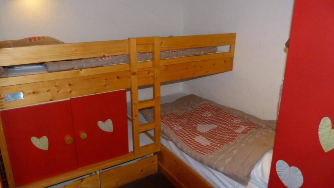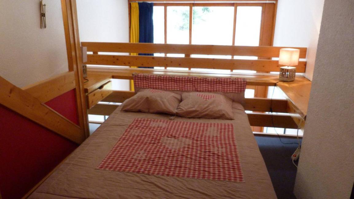 Fläche von ungefähr 30 m². 2te Etage. Orientierung : Süd. Blick station und Berg. Wohnzimmer mit Ausziehschlafcouch für 2 Personen. Zwischengeschoss mit Doppelbett, 2 Stockbetten. Kochnische mit Wasserkocher, Kaffeemaschine, Backofen, Toaster, Geschirrspülmaschine, Mikrowellenherd, 2 Glaskeramikkochfelder, Kühlschrank. Badezimmer mit Badewanne, Waschbecken, WC. Balkon. Die oberen Betten sind nicht für Kinder unter 6 Jahren geeignet.