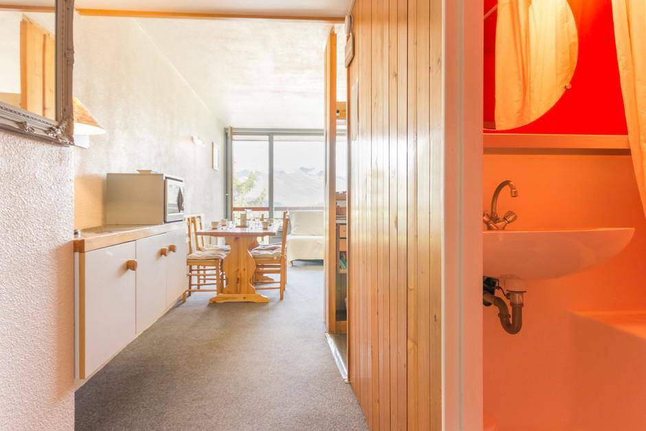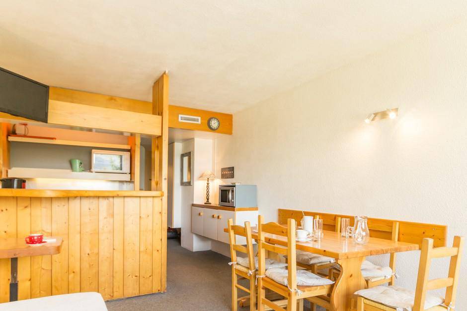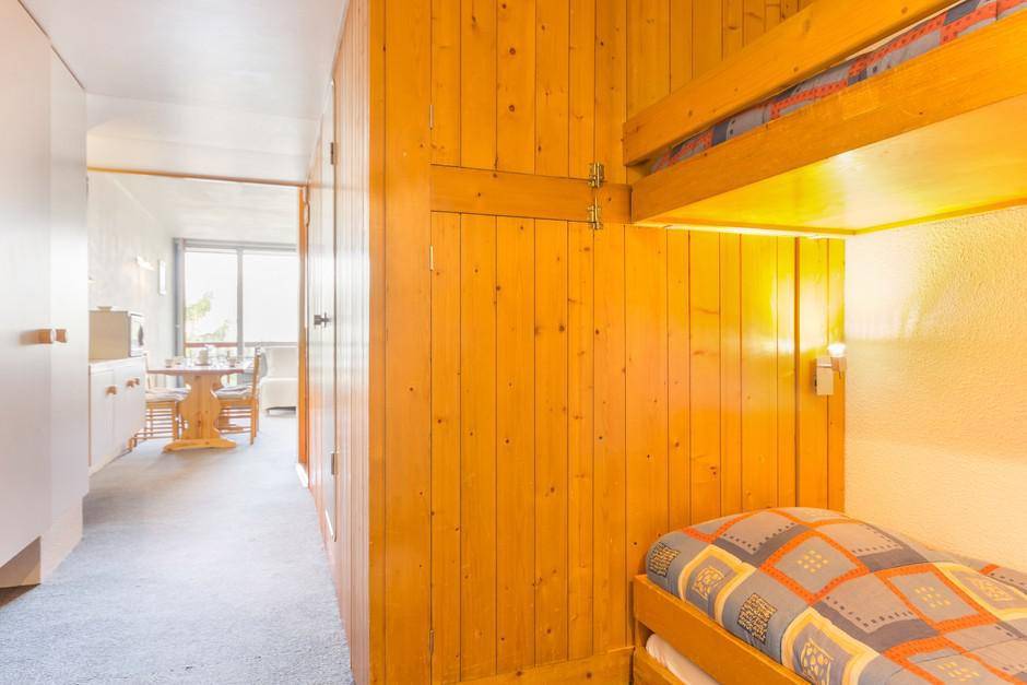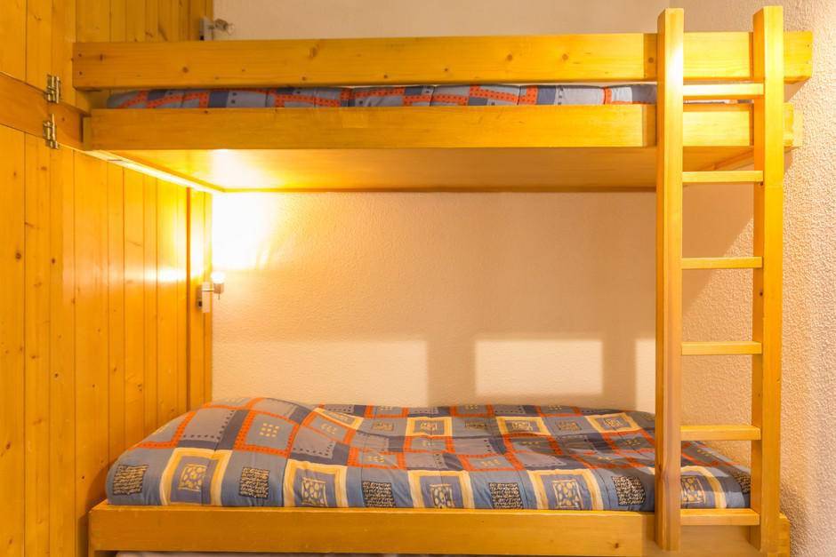 Fläche von ungefähr 30 m². 2te Etage. Orientierung : Nord, Ost. Diele mit 2 Stockbetten, Ausziehbett. Wohnzimmer mit einfache Klappschlafcouch (80), Ausziehschlafcouch für 2 Personen (80). Küche mit Kaffeemaschine (filtre), Toaster, Geschirrspülmaschine, Mikrowellenherd, Glaskeramikkochfelder, Kühlschrank. Badezimmer mit Badewanne, WC. Balkon. Die oberen Betten sind nicht für Kinder unter 6 Jahren geeignet.