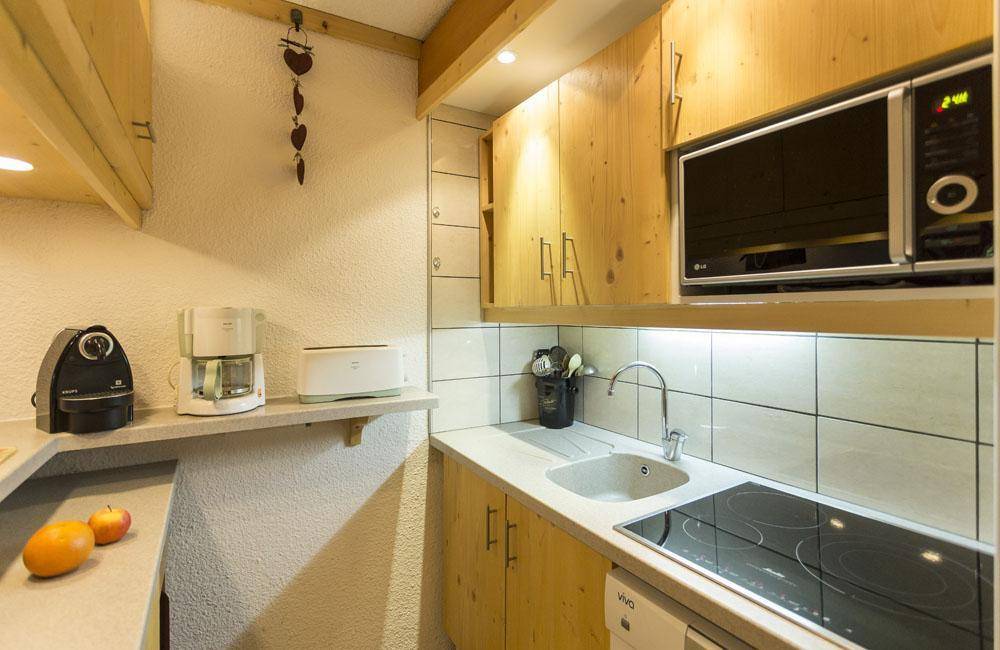 Fläche von ungefähr 40 m². 6te Etage. Orientierung : Süd, West. Wohnzimmer mit Klappschlafcouch, TV. Schlafzimmer mit Doppelbett (160). offener Schlafbereich mit 2 Stockbetten (80). Kochnische mit Wasserkocher, 2 Kaffeemaschinen (Nespresso et filtres), Toaster, Geschirrspülmaschine, Mikrowellenherd, kleiner Backofen, 3 Glaskeramikkochfelder, Kühlschrank. Badezimmer mit Waschmaschine. separates WC. Balkon. Die oberen Betten sind nicht für Kinder unter 6 Jahren geeignet.