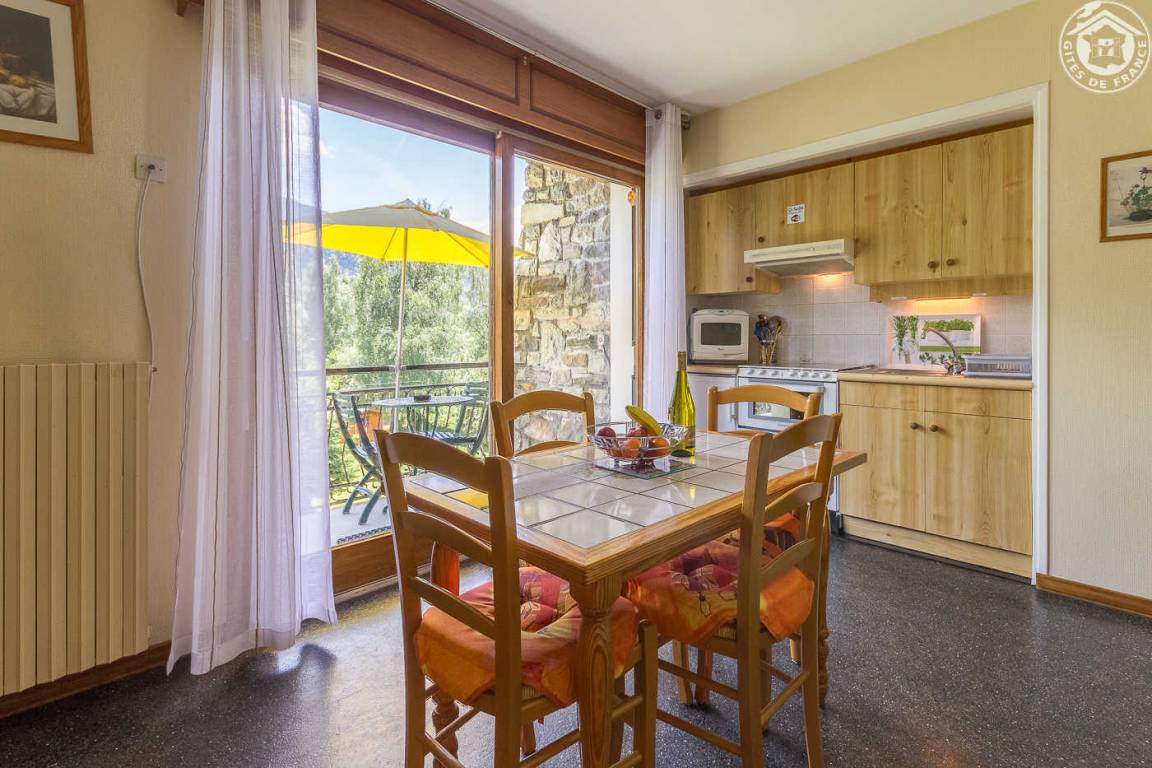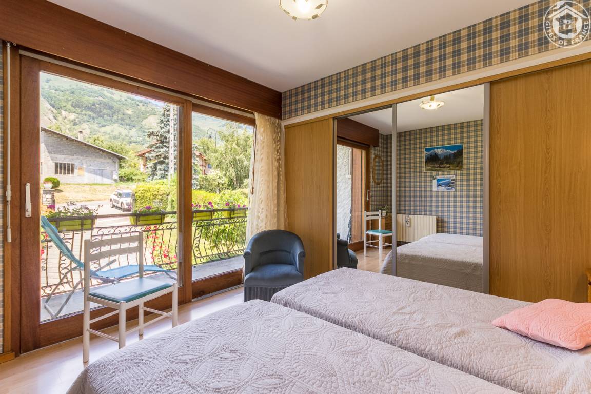 2 Gîtes im Haus des Besitzers. Gîte im 1. Stock: Wohnzimmer mit Küchenbereich (1 Schlafsofa für 2 Personen), WLAN-Internetverbindung, 1 Schlafzimmer (2 Einzelbetten), Badezimmer (Badewanne mit WC), 2 Balkone, eingezäuntes Grundstück mit Bäumen und Blumen. Bettwäsche wird gestellt + Betten gemacht. Standseilbahn Les Arcs auf 900 m.