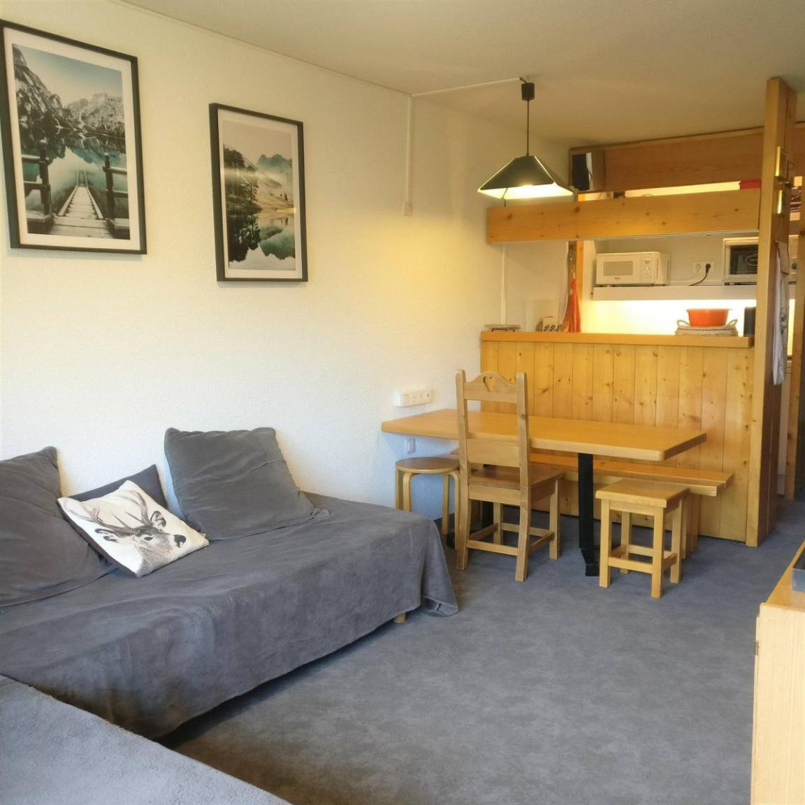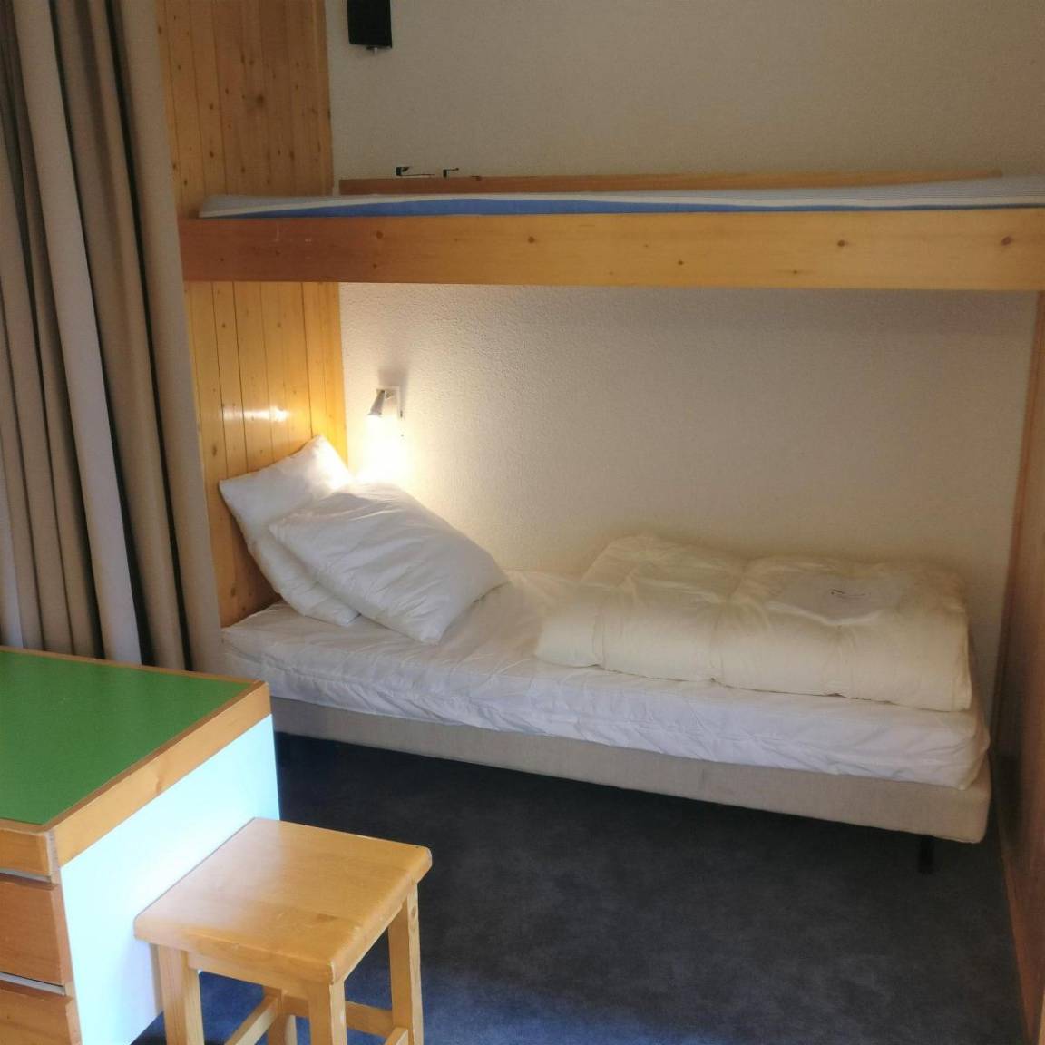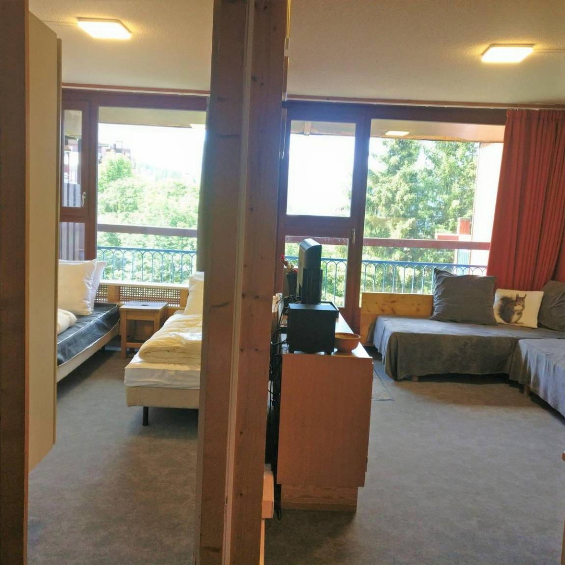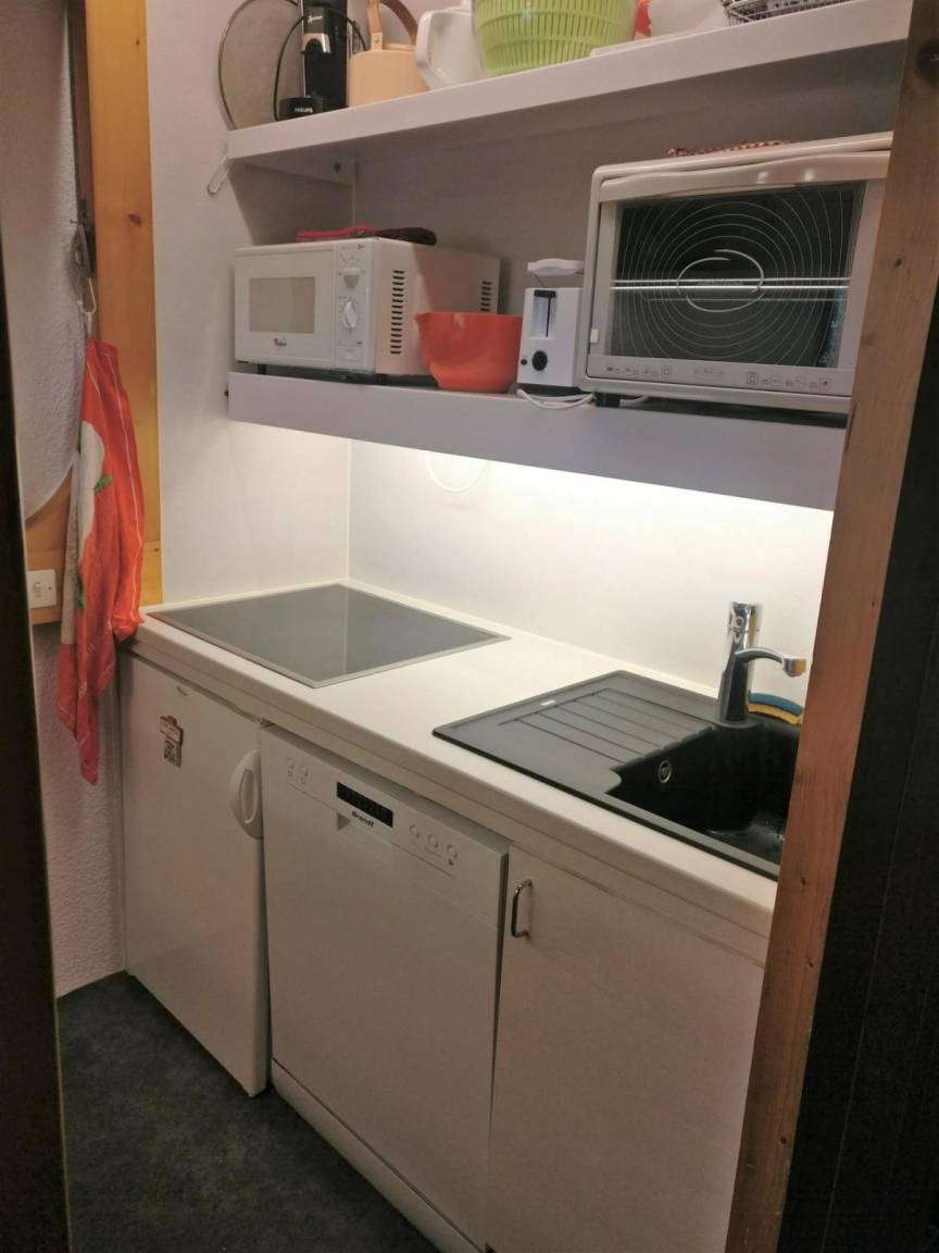 Fläche von ungefähr 40 m². 12te Etage. Orientierung : Nord, Süd, Süd-West. Wohnzimmer mit 2 Einzelbetten (80), TV. Schlafzimmer mit 2 Einzelbetten (80). offener Schlafbereich mit 2 Stockbetten (80). Kochnische mit Wasserkocher, Kaffeemaschine (filtre), Toaster, Geschirrspülmaschine, Mikrowellenherd, kleiner Backofen, 4 Glaskeramikkochfelder, Kühlschrank. Badezimmer. separates WC. Balkon. Die oberen Betten sind nicht für Kinder unter 6 Jahren geeignet.
