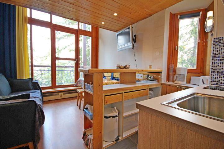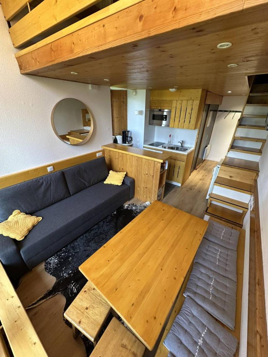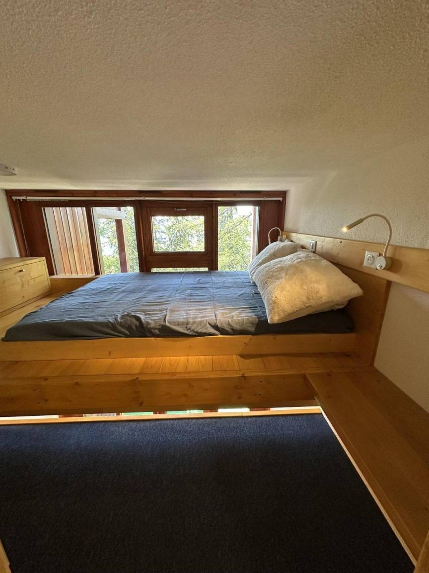Fläche von ungefähr 38 m². Einige als Maisonette. 2te Etage. Orientierung : Süd, West. Niveau 0 : Wohnzimmer mit Klappschlafcouch (140). Kochnische mit Geschirrspülmaschine, Mikrowellenherd, 2 Glaskeramikkochfelder, Kühlschrank. Badezimmer mit Badewanne, WC. Balkon. Niveau 1 : Schlafbereich mit 2 Stockbetten. Zwischengeschoss mit Doppelbett. Die oberen Betten sind nicht für Kinder unter 6 Jahren geeignet.