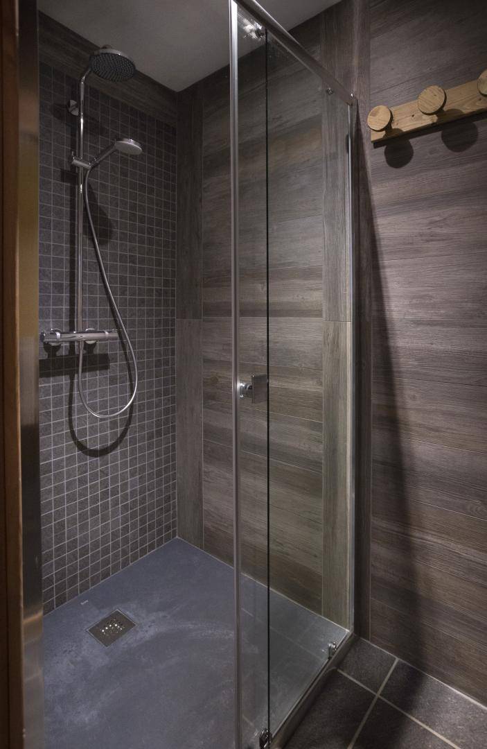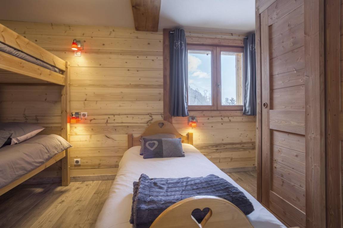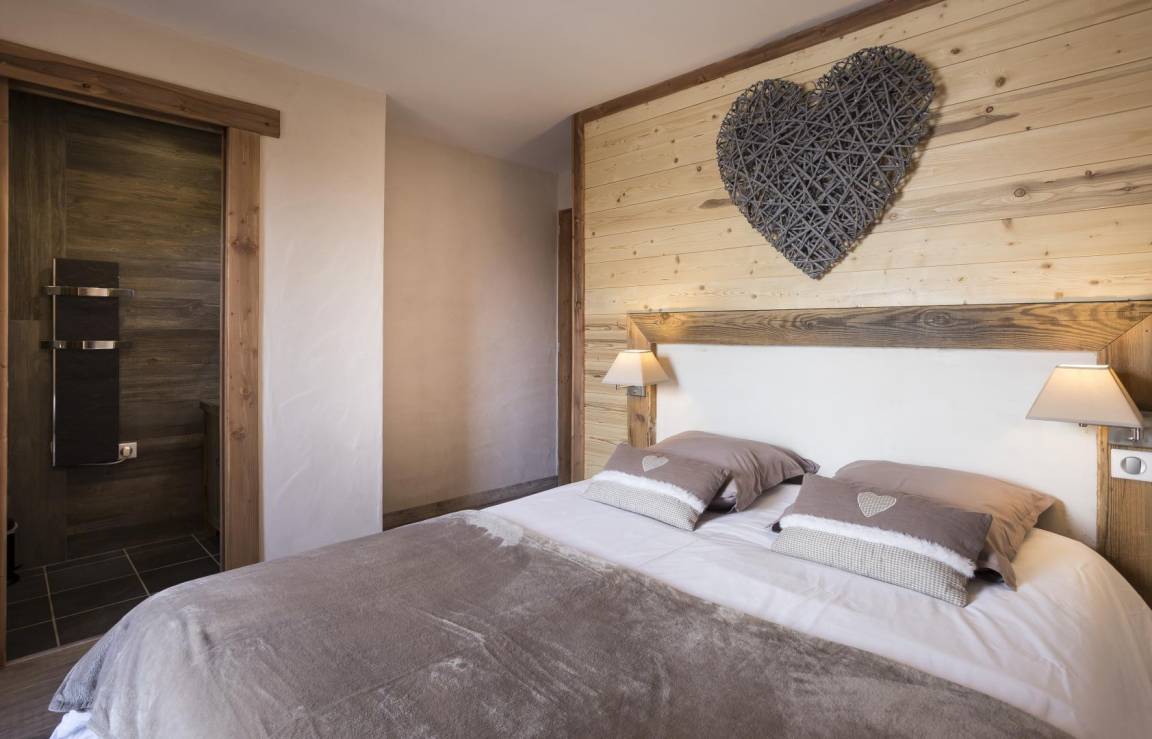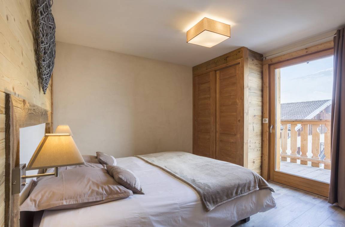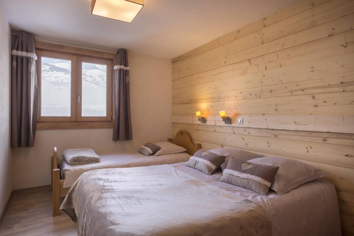 Im Chalet des Eigentümers (der im Erdgeschoss wohnt). Auf 2 Ebenen mit separatem Eingang. Parken auf dem öffentlichen Parkplatz am Weilereingang (60 m). Im 1. Stock (auf einer Ebene von der Zufahrtsstraße und dem Parkplatz): Eingang, 4-Sitzer-Sauna (mit Dusche), 4 Schlafzimmer (1 Doppelbett 160 x 200 cm mit Badezimmer (Dusche) / 1 Doppelbett 140 x 200 cm + 1 Einzelbett 90x200 cm / 3 Einzelbetten 90x200 cm davon 2 Etagenbetten / 3 Einzelbetten 90x200 cm davon 2 Etagenbetten), Badezimmer (Badewanne), 2 separate Toiletten. Im 2. Stock: Wohnküche mit Balkon, 1 Schlafzimmer mit Badezimmer (Dusche) (1 Doppelbett 160x200 cm), Waschküche, separates WC. Standseilbahn nach Les Arcs 1600 in 2 km Entfernung.
