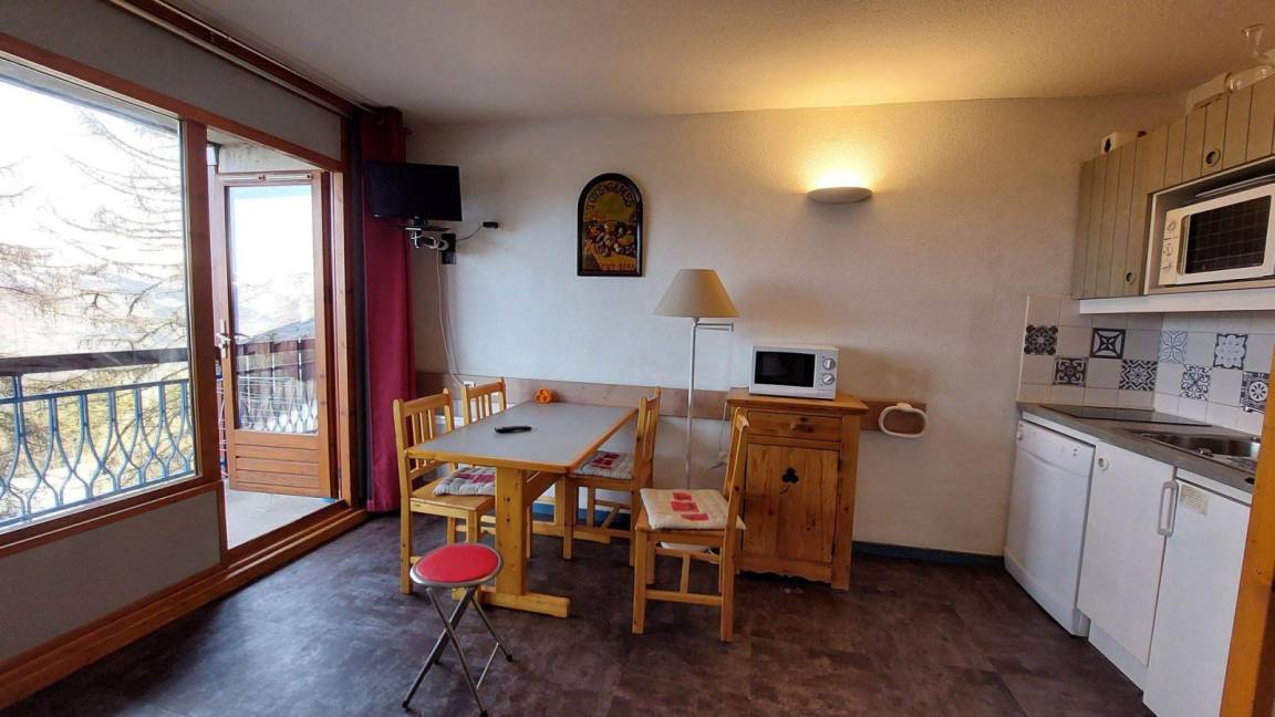 Fläche von ungefähr 30 m². 2te Etage. Orientierung : Süd-West, West. Blick tannen und Tal. Wohnzimmer mit Ausziehschlafcouch für 2 Personen, ausklappbares Wandbett, Einzelbett. offener Schlafbereich mit 2 Stockbetten. Kochnische mit Wasserkocher, Kaffeemaschine, Backofen, Toaster, Geschirrspülmaschine, Glaskeramikkochfelder, Kühlschrank. Badezimmer mit Badewanne, WC. Balkon. Die oberen Betten sind nicht für Kinder unter 6 Jahren geeignet.