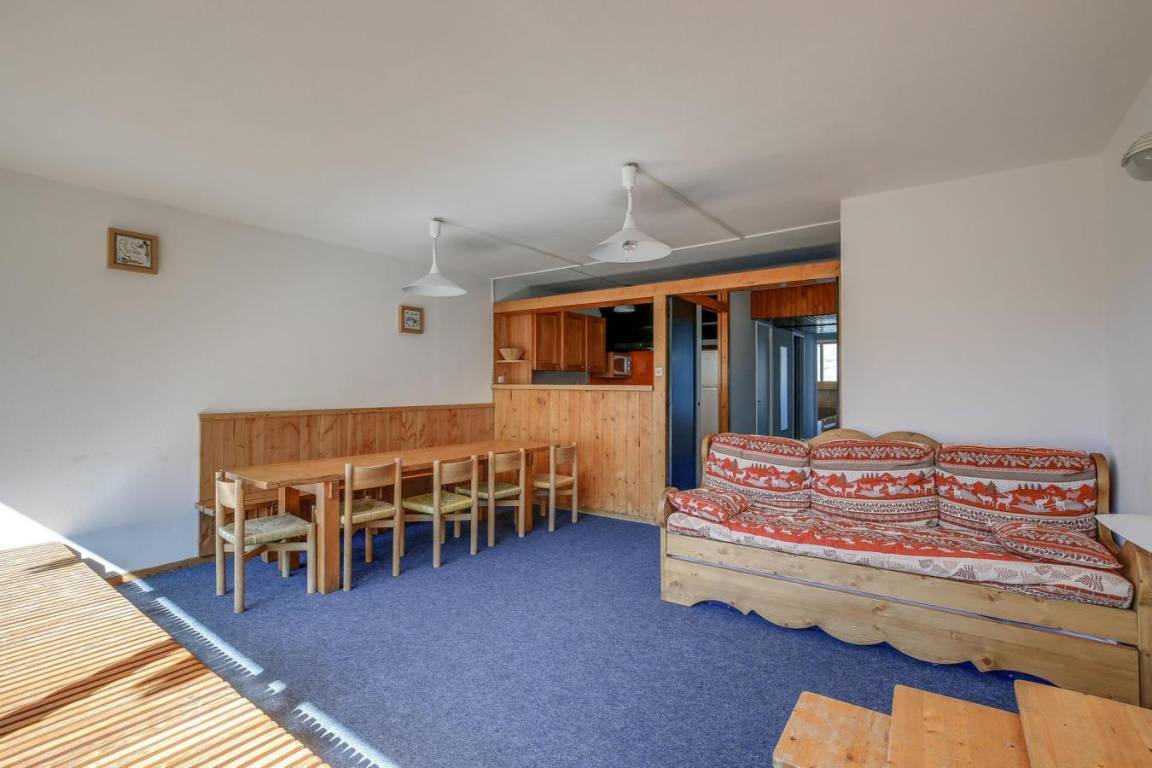 Fläche von ungefähr 60 m². 7te Etage. Orientierung : Süd. Wohnzimmer mit Ausziehschlafcouch für 2 Personen (80). Schlafzimmer mit Doppelbett (140). Schlafzimmer mit Einzelbett, 2 Stockbetten (80). Küche mit Backofen, Geschirrspülmaschine, Mikrowellenherd, 2 elektronische Herdplatten, Kühlschrank. Badezimmer mit Dusche. separates WC. Balkon. Die oberen Betten sind nicht für Kinder unter 6 Jahren geeignet.