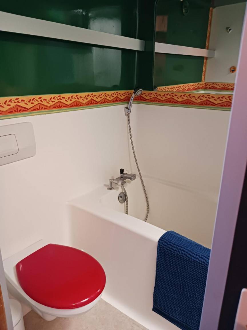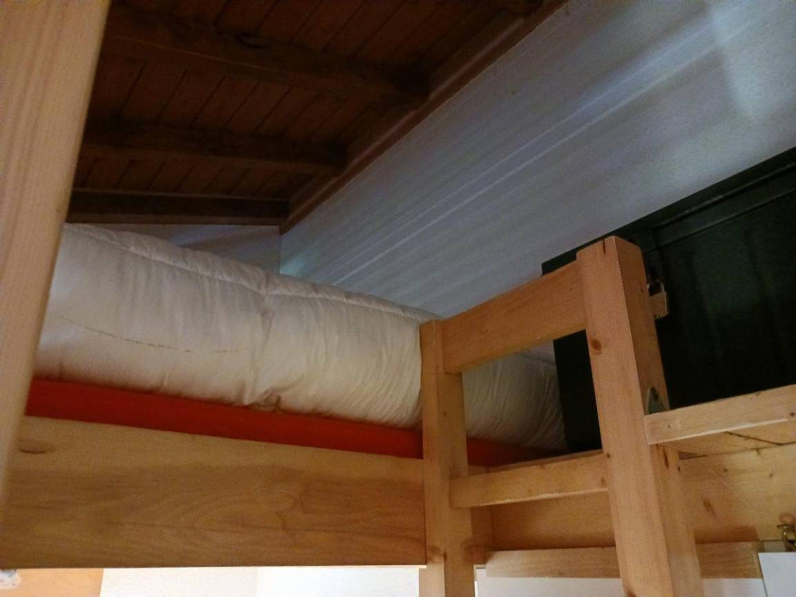 Fläche von ungefähr 30 m². 5te Etage. Orientierung : Nord, Ost. Niveau 0 : Wohnzimmer mit Sofa. Kochnische mit Wasserkocher, Kaffeemaschine, kleiner Backofen mit Mikrowellenfunktion, Toaster, Geschirrspülmaschine, 2 elektronische Herdplatten, Kühlschrank. Badezimmer mit WC. Niveau 1 : Zwischengeschoss mit Doppelbett (140x190), Matratze (supplémentaire 140x190). offener Schlafbereich mit einfache Klappschlafcouch.