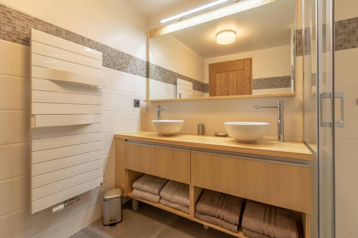 Fläche von ungefähr 80 m². 3te Etage. Orientierung : West. Blick tal. Diele. Wohnzimmer mit Klappschlafcouch. Schlafzimmer mit , Dusche, Doppelbett (160x190), WC. Schlafzimmer mit Doppelbett (160x190), Heizkörper. Schlafzimmer mit 2 Stockbetten (90). Küche mit Fonduegerät, Raclettegerät, 2 Kaffeemaschinen (filtres et Nespresso), Backofen, Toaster, Mikrowellenherd, 2 Induktionsherdplatten, Kühl-Gefrier-Kombination. Badezimmer mit . Waschräume mit Dusche. WC. Terrasse. Die oberen Betten sind nicht für Kinder unter 6 Jahren geeignet.