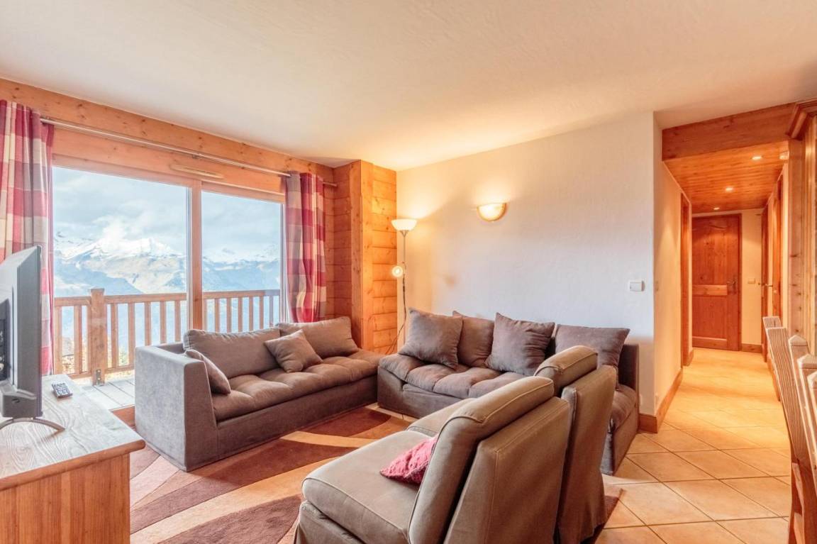 Fläche von ungefähr 75 m². Etage -1. Orientierung : West. Wohnzimmer mit 2 Sofas, 2 Sessel, TV. 2 Schlafzimmer mit 2 Einzelbetten (90x190), Heizkörper. Schlafzimmer mit Doppelbett (160x190), Heizkörper. Schlafzimmer mit 2 Stockbetten (80*190), Heizkörper. Küche mit Raclettegerät, Wasserkocher, Kaffeemaschine (filtres), Backofen, Toaster, Geschirrspülmaschine, 2 Glaskeramikkochfelder, Kühl-Gefrier-Kombination. Badezimmer mit Waschmaschine. Badezimmer. Waschräume mit Dusche. WC. Balkon mit Tisch. Die oberen Betten sind nicht für Kinder unter 6 Jahren geeignet.